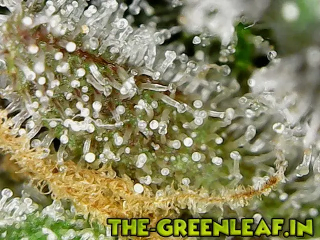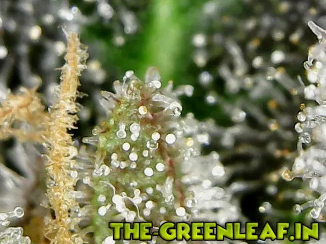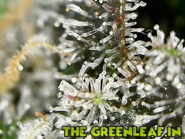 Eine Dame ist richtig blau geworden. Von dieser habe ich heute eine kleinen Bud aus der Mitte genommen und mal Fotos von den Trichomen gemacht.