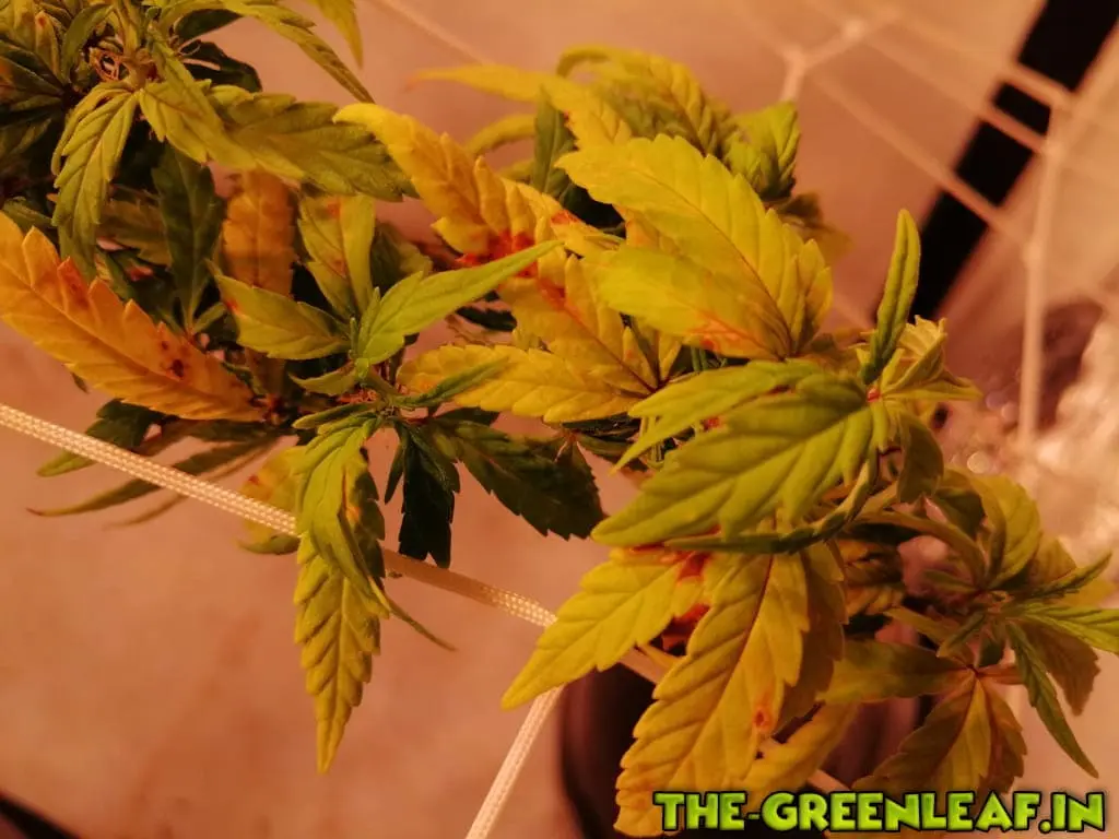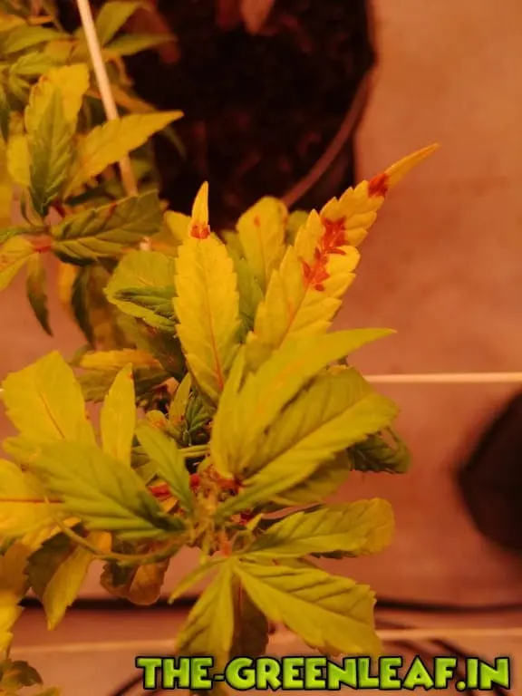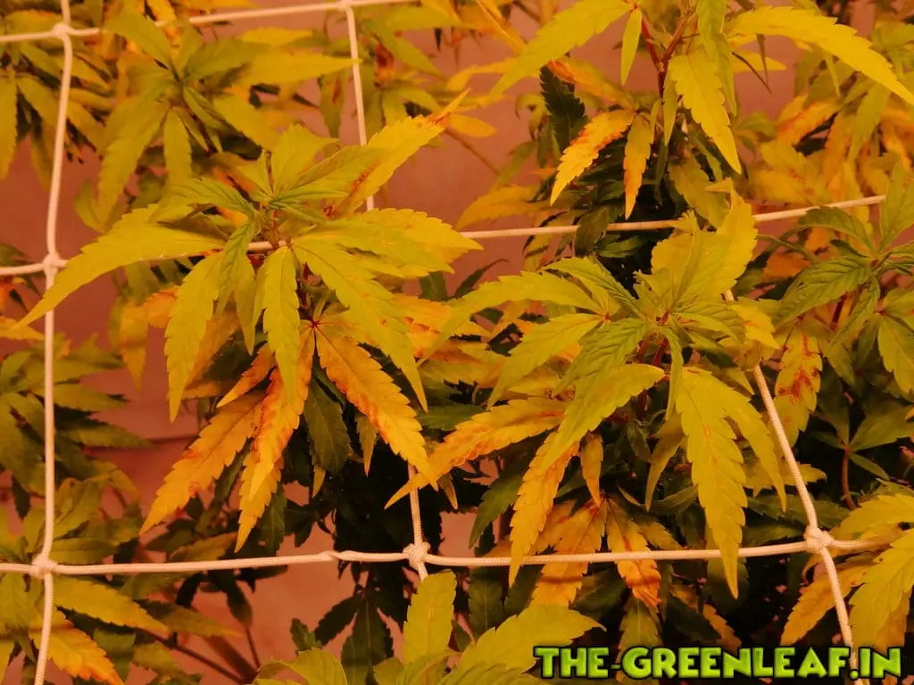 | Symptome | Blätter werden zunehmend gelb/braun, fühlen sich trocken und strohig an. Insgesamt hellgrünes Blattwerk. |