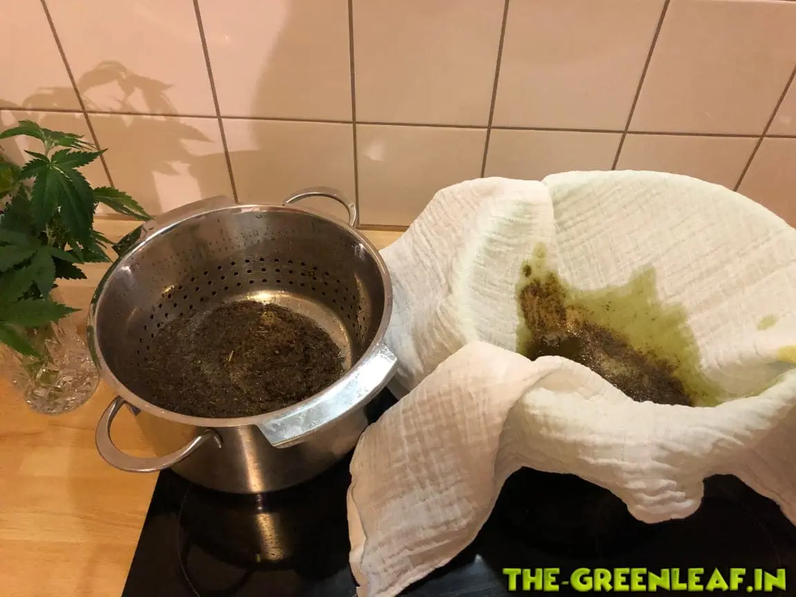 Es schwimmt kein Fett Film auf der Oberfläche des Wasserbades also gehe ich davon aus dass der letzte Beutel dicht gehalten hat. Allerdings sieht es so aus als hätte das Pflanzenmaterial die Butter größtenteils in sich aufgenommen. Ich dachte naiver weise, ich könnte die Butter einfach durch ein Sieb abgießen. Wie mach ihr das, erhitzen bis flüssig, und dann durch ein Durchschlag pressen?