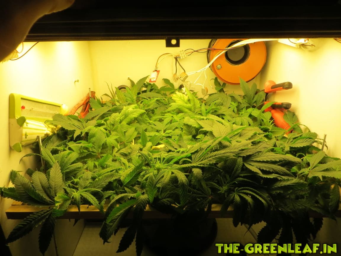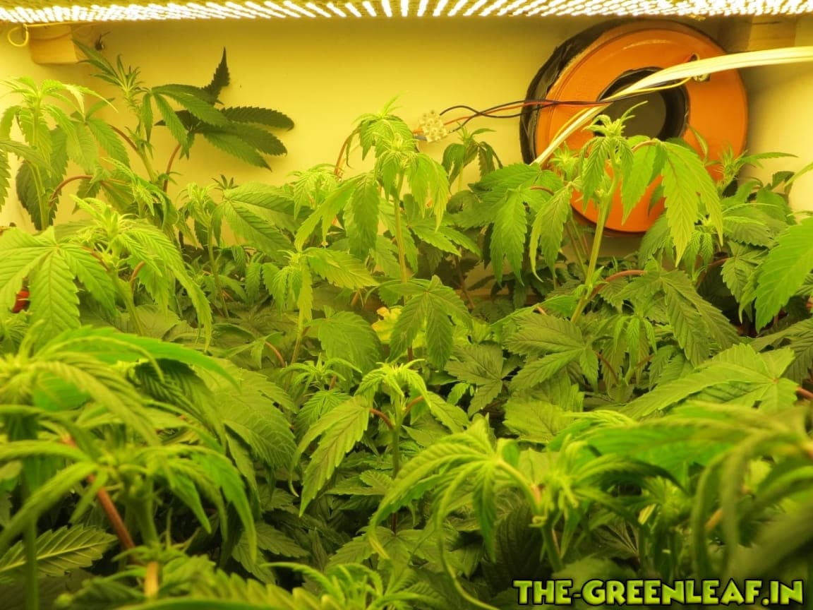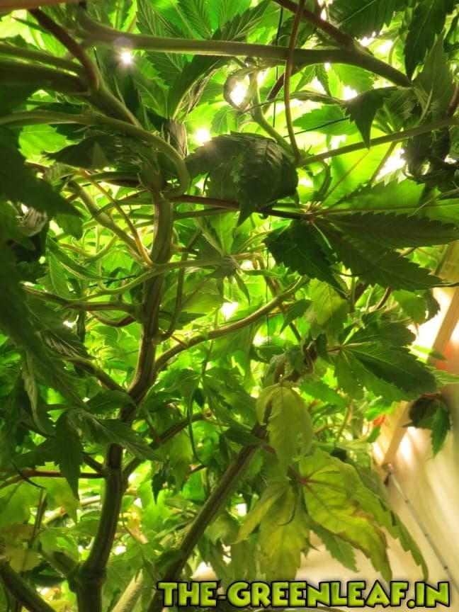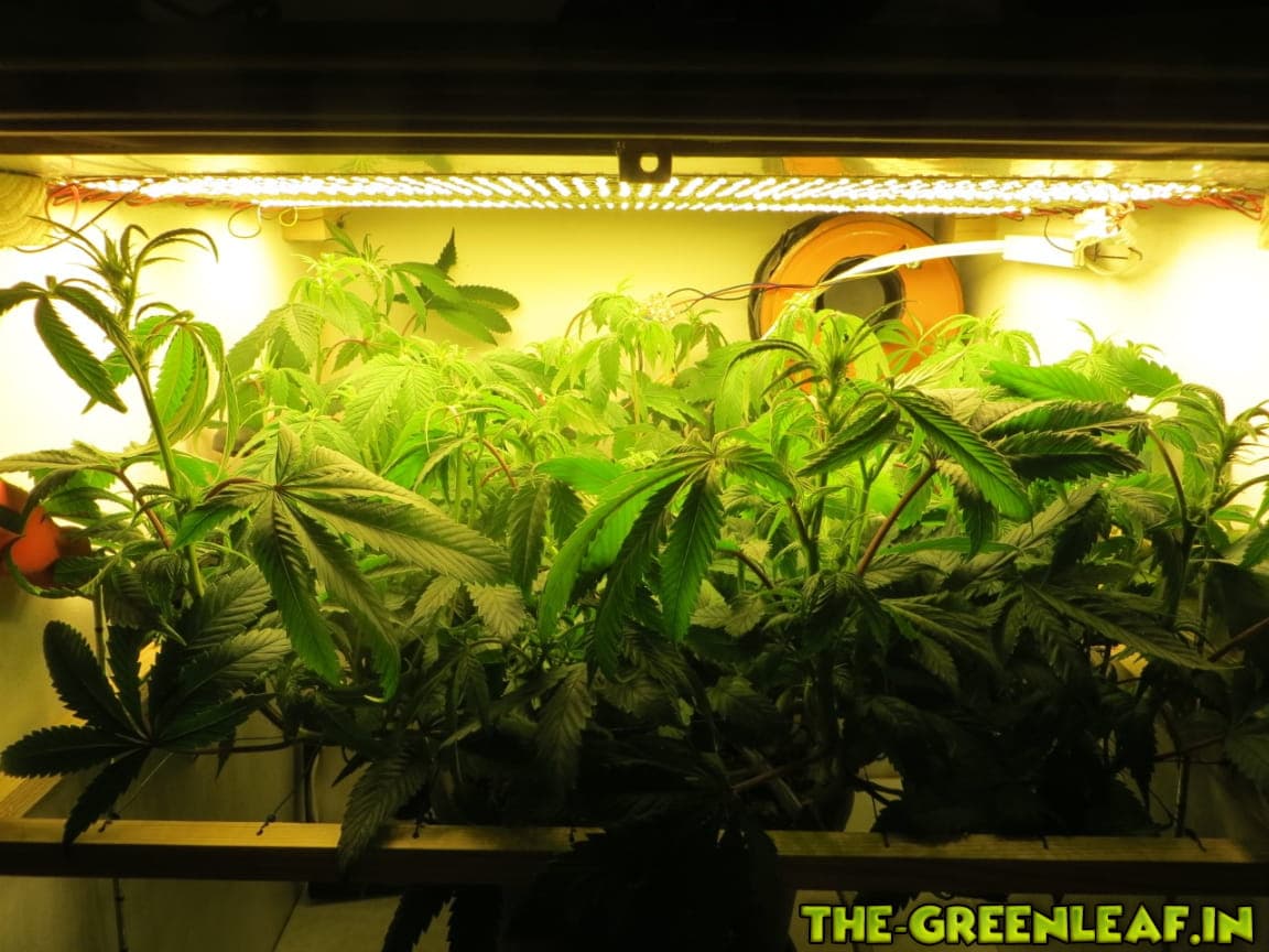 Die Dame hat sich sich unter dem billig DIY Panel aus Stripes besser entwickelt als erwartet. Seit der Blüte sind es ca 74w, in der Veggie waren es ca 36w.