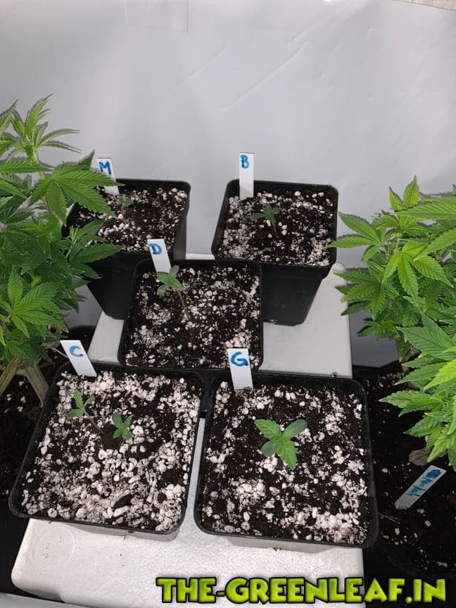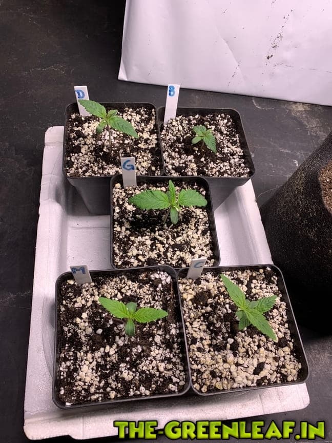 Heute alle eingetopft in 0.9l mit 60/40 Gemisch Plagron lightmix / Perlit. 100ml Leitungswasser pro Topf zum angiessen.