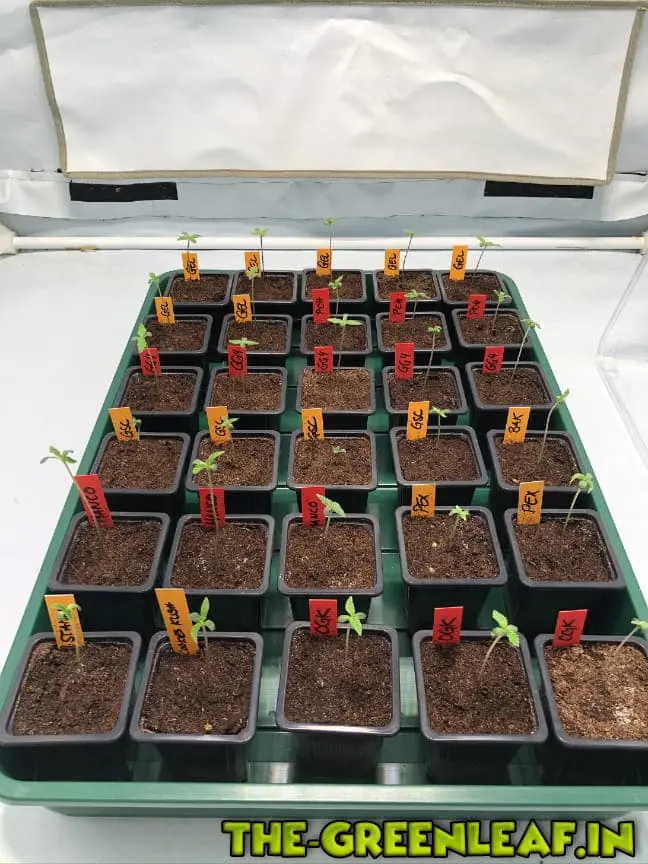 Ich habe alle gekeimten in Mini-Töpfe mit Plagron Seeding & Cutting Soil gepflanzt und in ein Mini-Gewächshaus gestellt. Weil ich kein schwächeres Licht habe sind die Kleinen direkt unter die LED gekommen