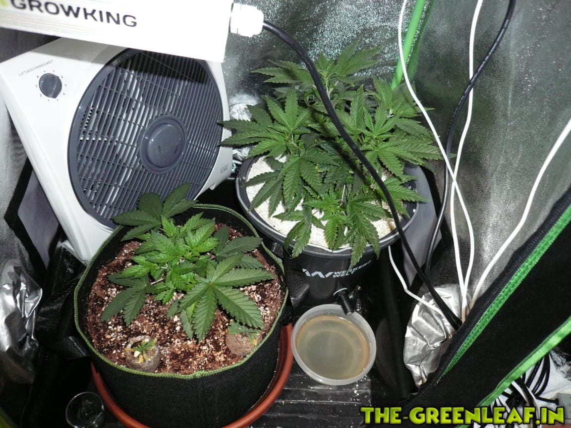 Beleuchtung jetzt Zeus XT 2700K auf ca 90 Watt und noch die lütte GrowKing mit ihren 40 Watt beleuchten die Mädels.