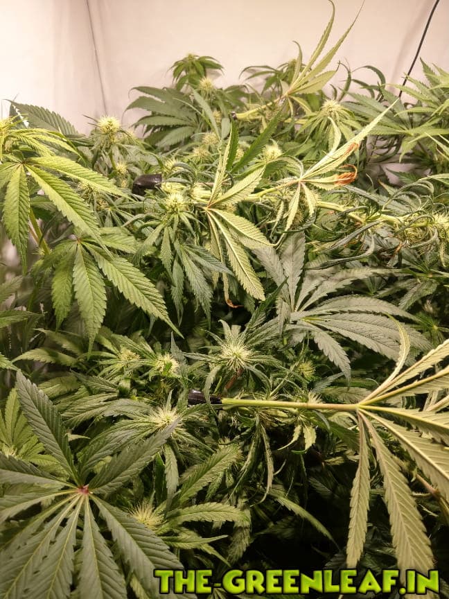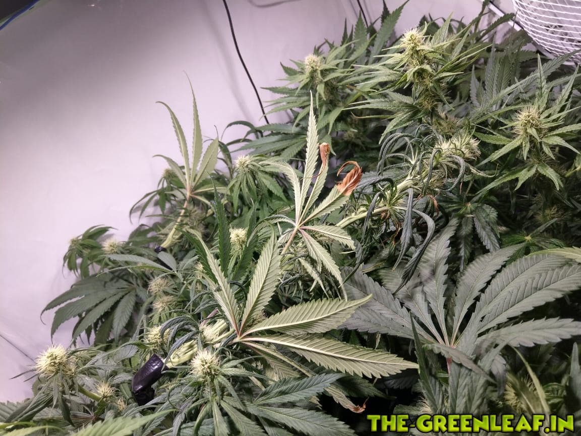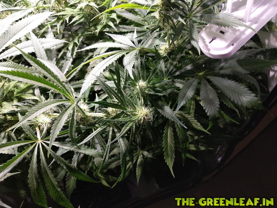 Unter Kunstlicht ,wie wir es in den Boxen/Zelten nutzen, entwickelt Hanf "eigentlich" viel zu viele Blätter, also da kann man getrost und ohne große Einbuße auch mal paar abzwicken die stören oder auf der Erde baumeln.---just my 2 cents- -