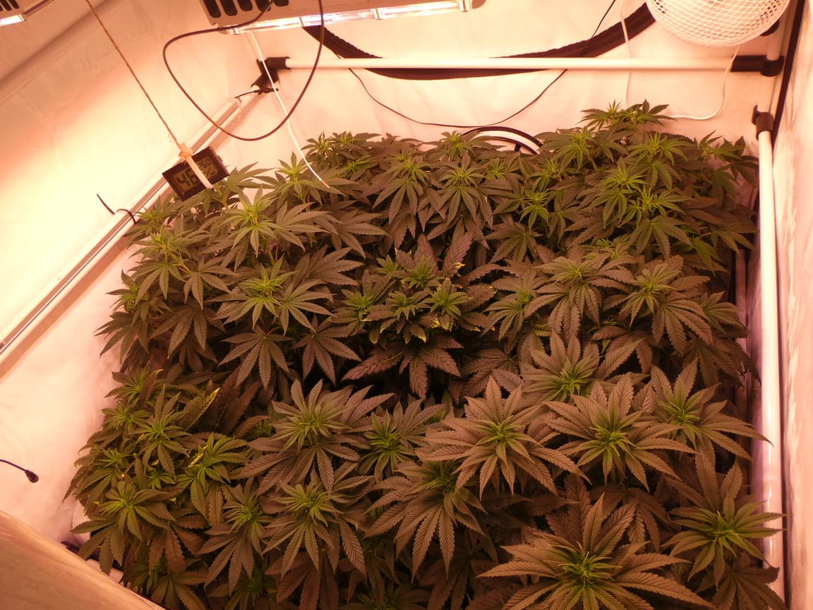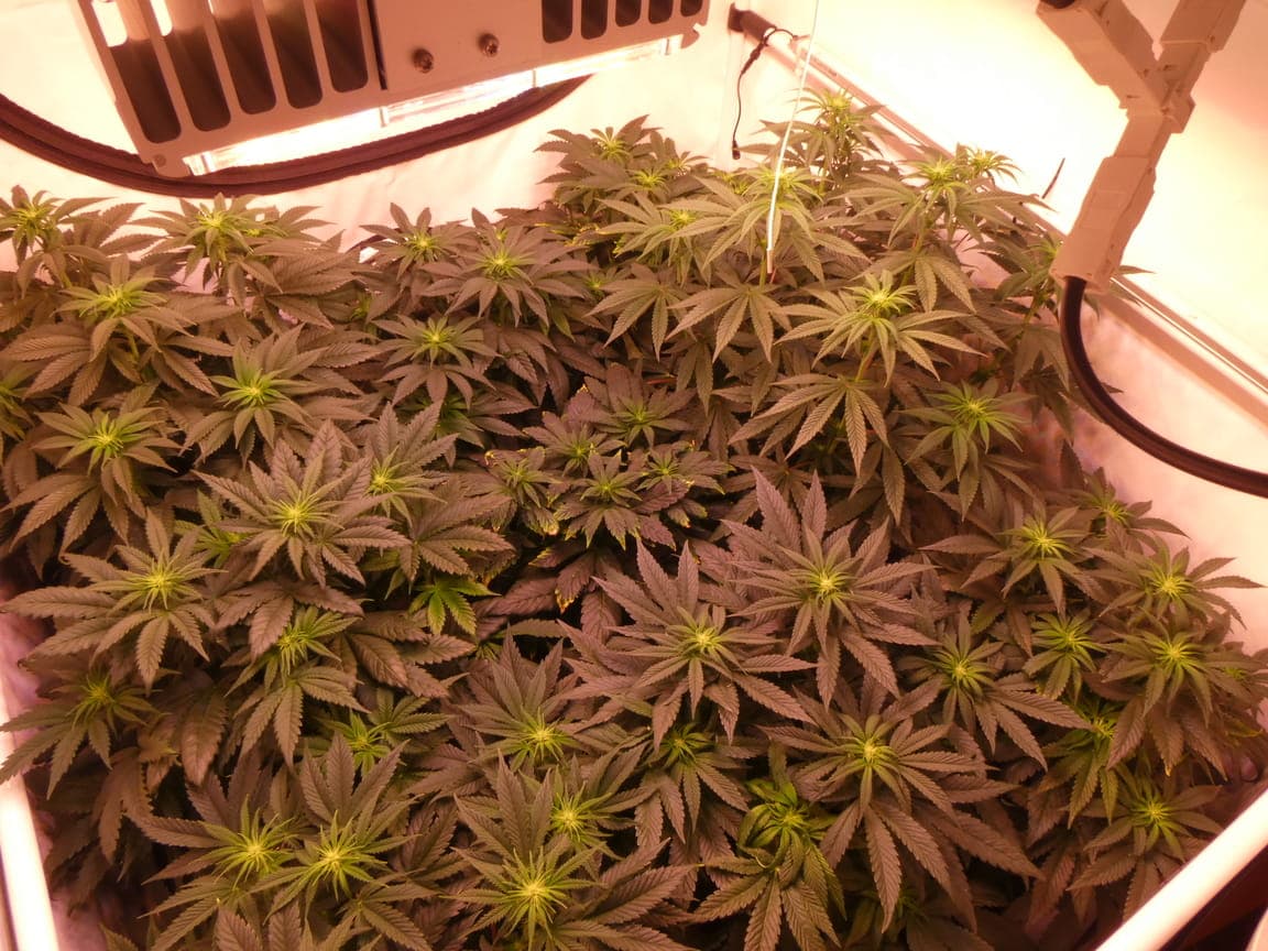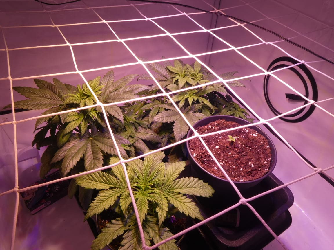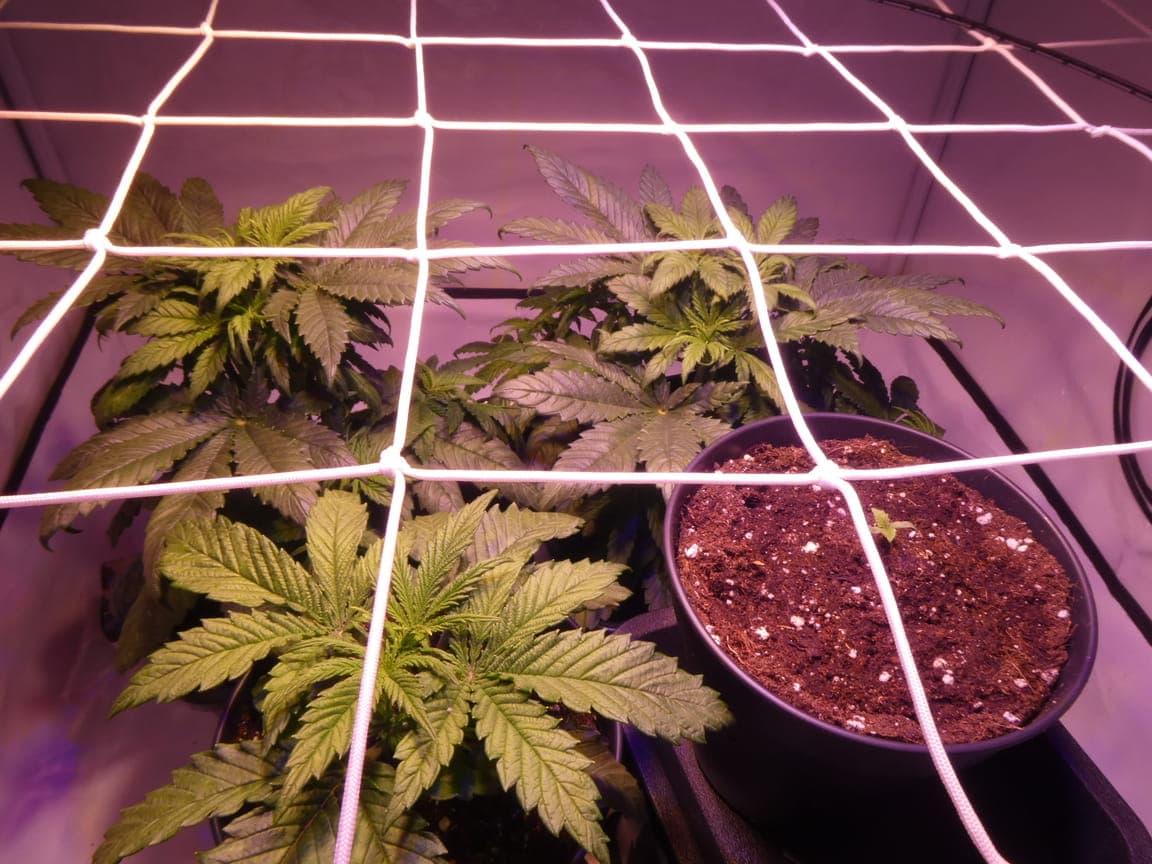 Hab die 24k nach dem Toppen nochmal ein bisschen runtergebunden , damit sie mehr in die Breite gehen und die Nachzügler näher an der Lampe sein können.