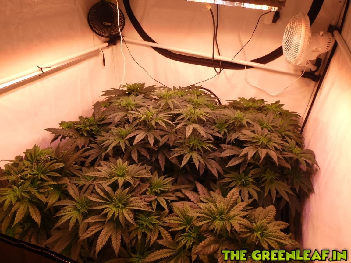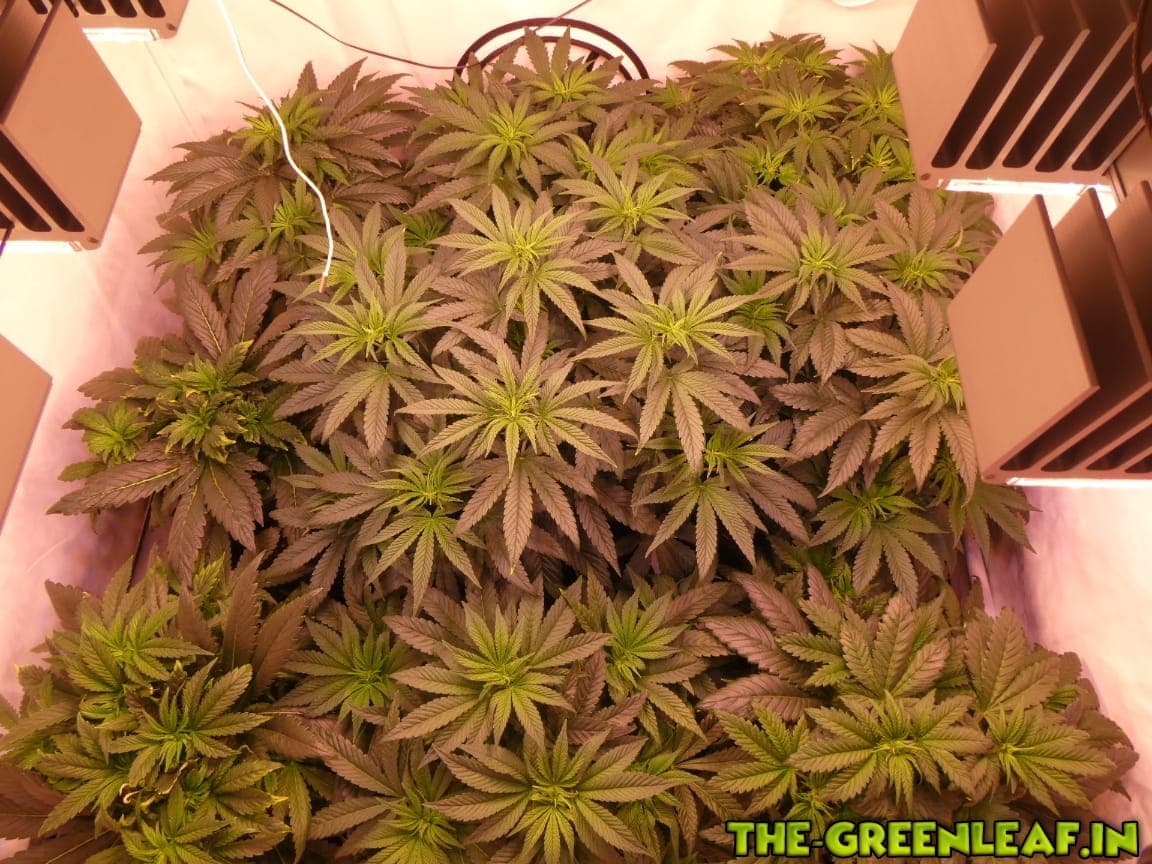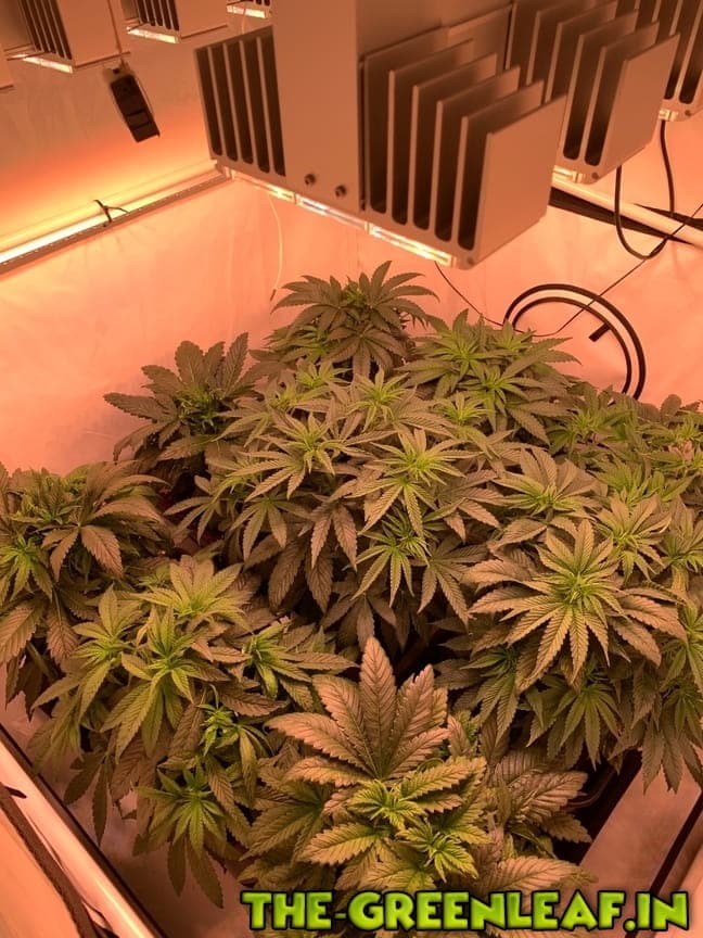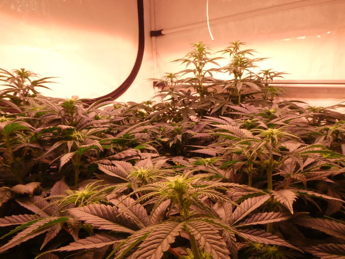 Hab die 24k nach dem Toppen nochmal ein bisschen runtergebunden , damit sie mehr in die Breite gehen und die Nachzügler näher an der Lampe sein können.