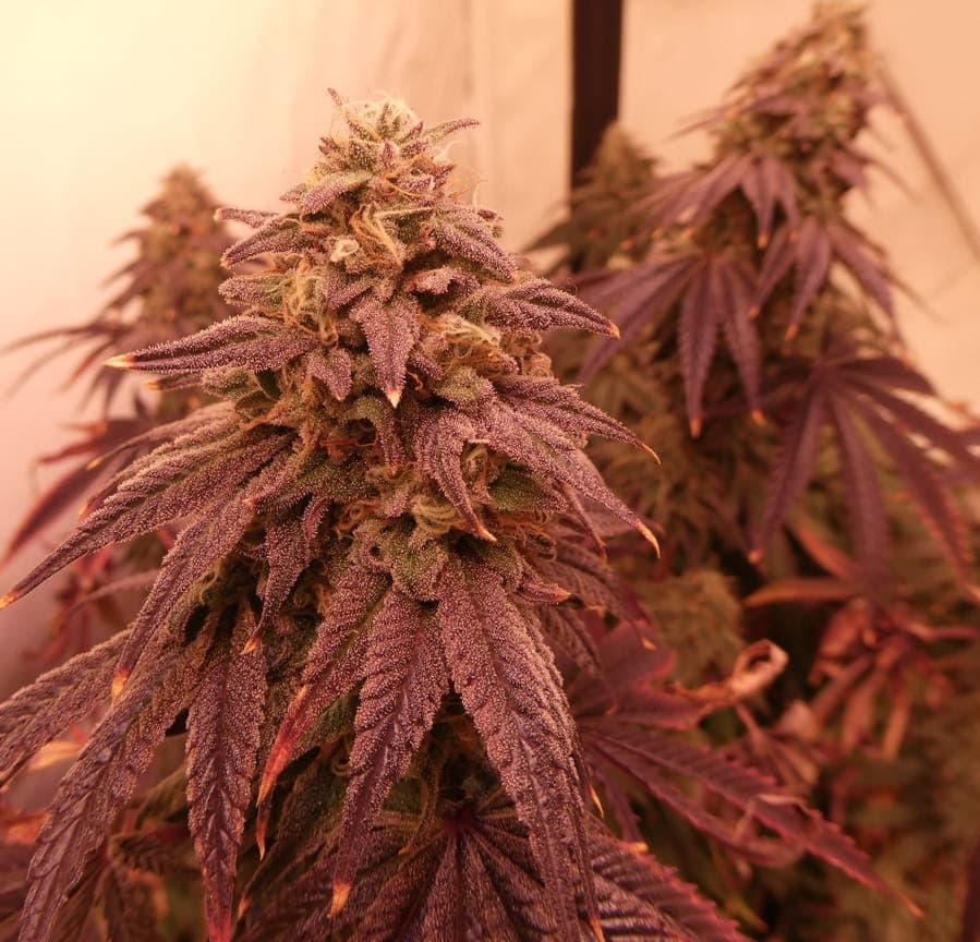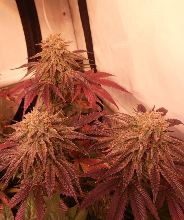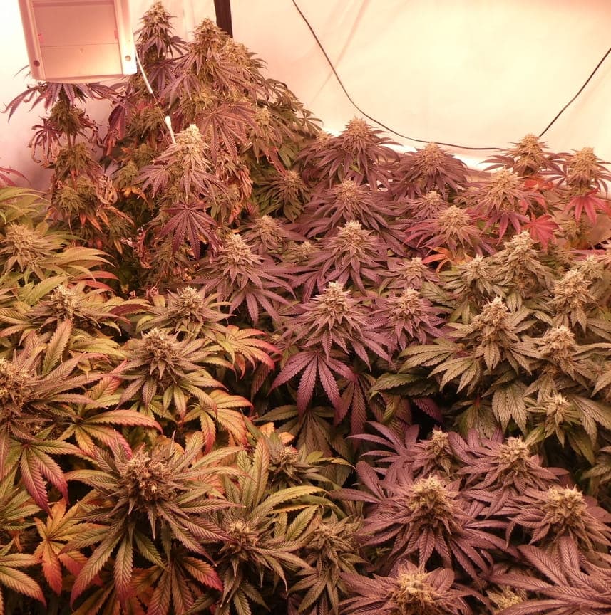 Bin soweit zufrieden, momentan bilden sich keine Pollensäcke mehr nach, manche Blätter fangen schon an sich ein ein schönes Lila zu färben , der Geruch ist so intensiv wie noch nie zu diesem Zeitpunkt und die Harzproduktion wird mehr und mehr ...