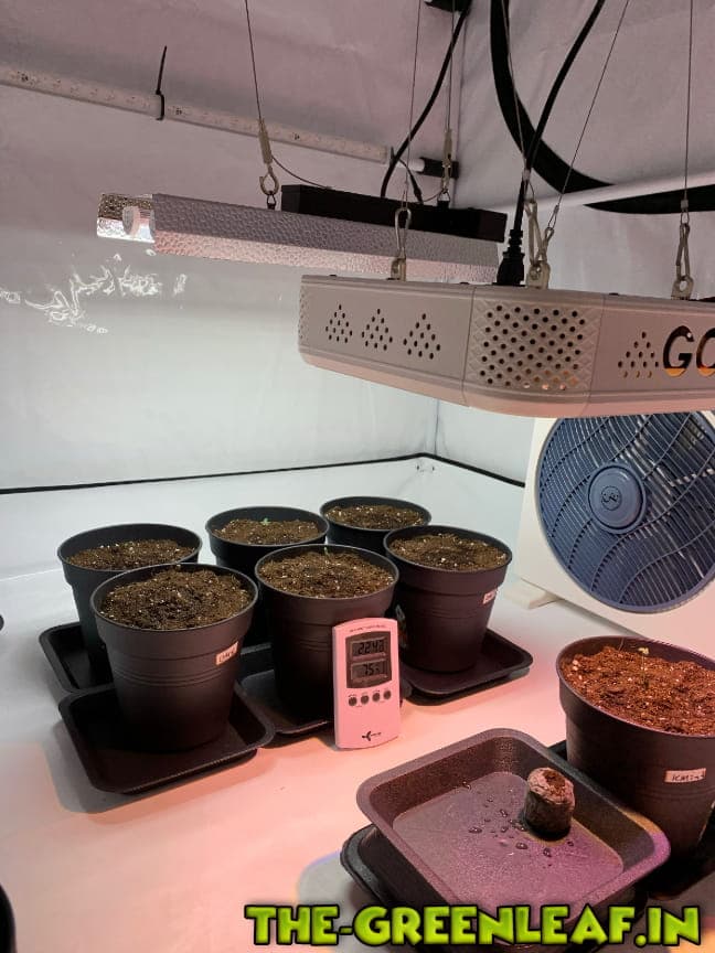 Die 7 wurden jetzt in Jiffies versenkt und in ein kleines Vorzuchthäuschen gestellt , sobald die erste das Licht erblickt kommen sie unter eine Vorzuchtlampe und auch ins Tent.