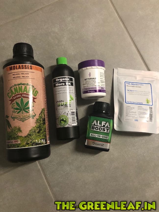 Ziel ist es, nur Wasser aus dem Hahn zu gießen, ohne PH Anpassung, 1 x die Woche gibt es im Endtopf Melasse, Bittersalz bei Bedarf, PK Booster falls nötig, von Green Buzz Liquid