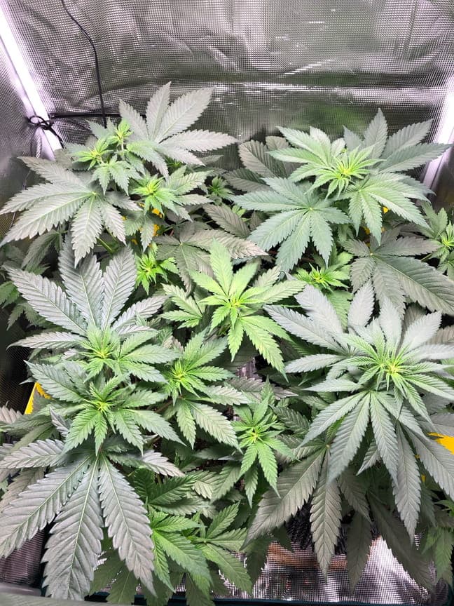 ...läuft soweit, ein Blatt sieht komisch aus, aber der Rest ist in Ordnung, ich mach momentan nichts, außer 1-2 x die Woche zu gießen, bisher gefällt mir die Erde und den Damen denke ich auch thump02....die Pflanzen bekommen unter der bioledex im veggie Modus doch recht große und fleischige Blätter, ist mir das letzte mal auch schon aufgefallen, gefällt mir thump03...heute auf Blüte Modus umgestellt, die Spider Farmer kommt ab budbildung noch zusätzlich in die Hütte weed01