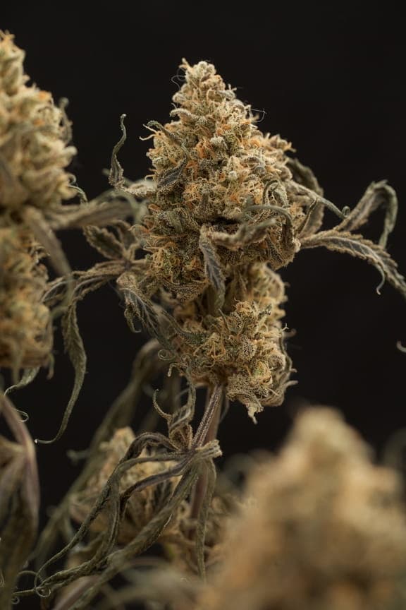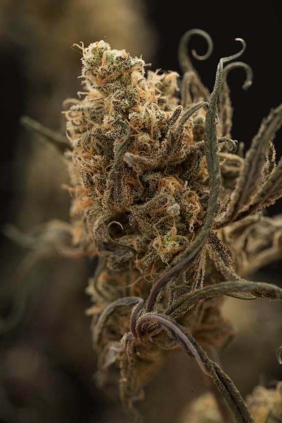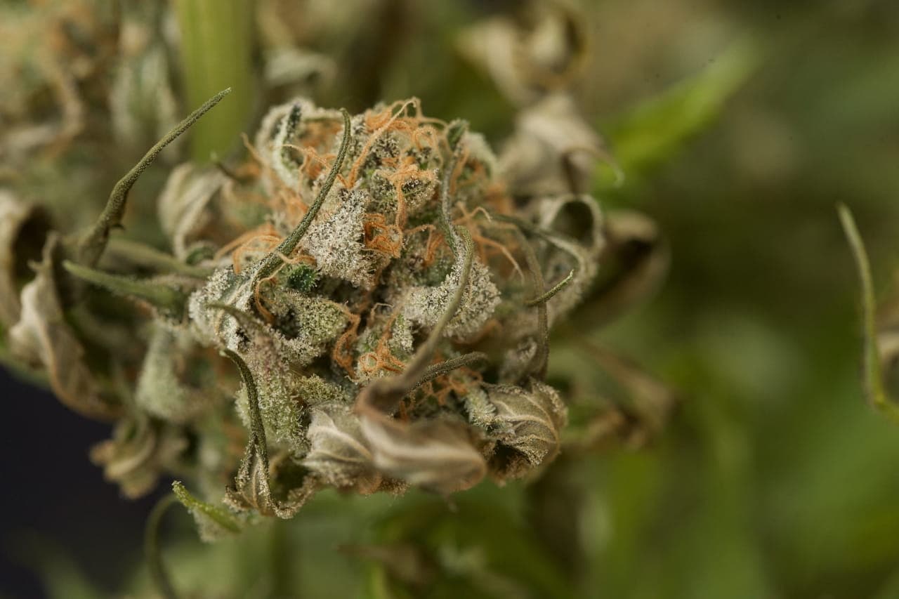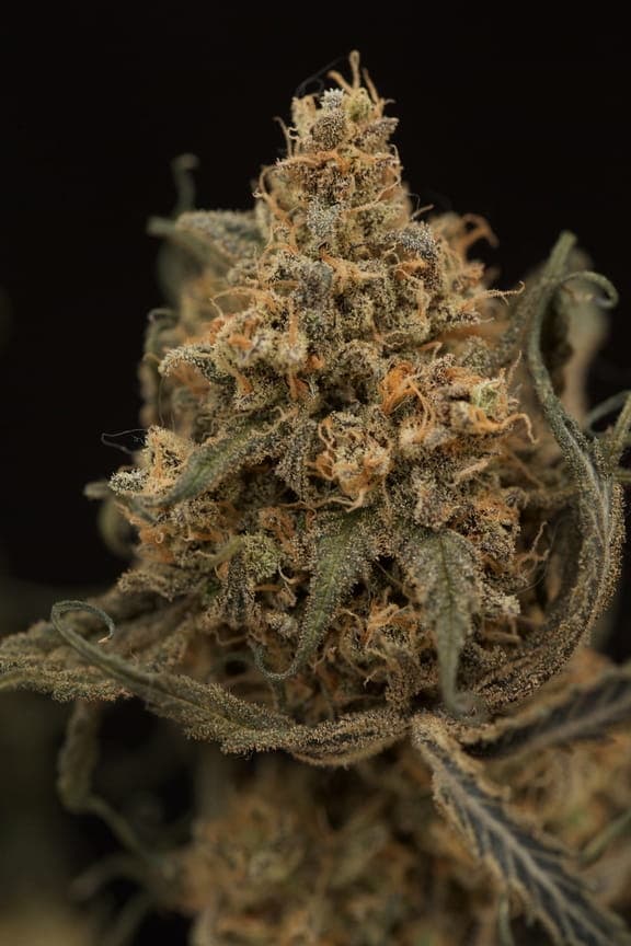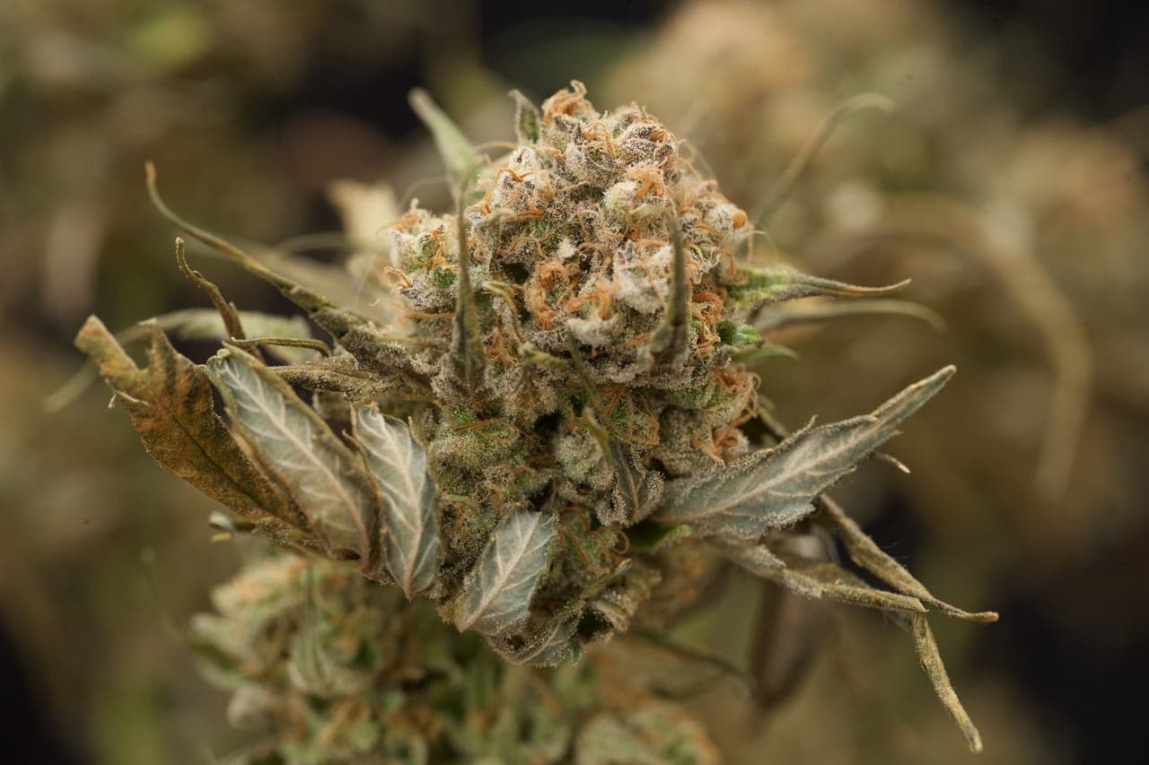 Ihre pistils sind ein normales Braun/orange und die Blüten haben eine rundliche Hybrid-Form. Sie sind schon ordentlich mit Harz überzogen, aber von den restlichen Farben eher lasch; ein dunkles grün bis braun.