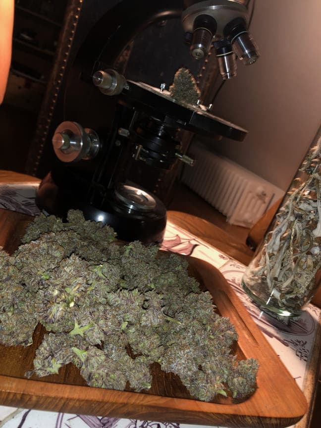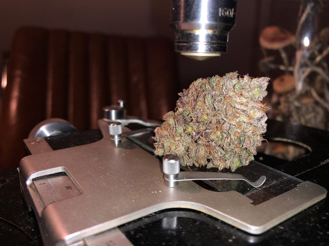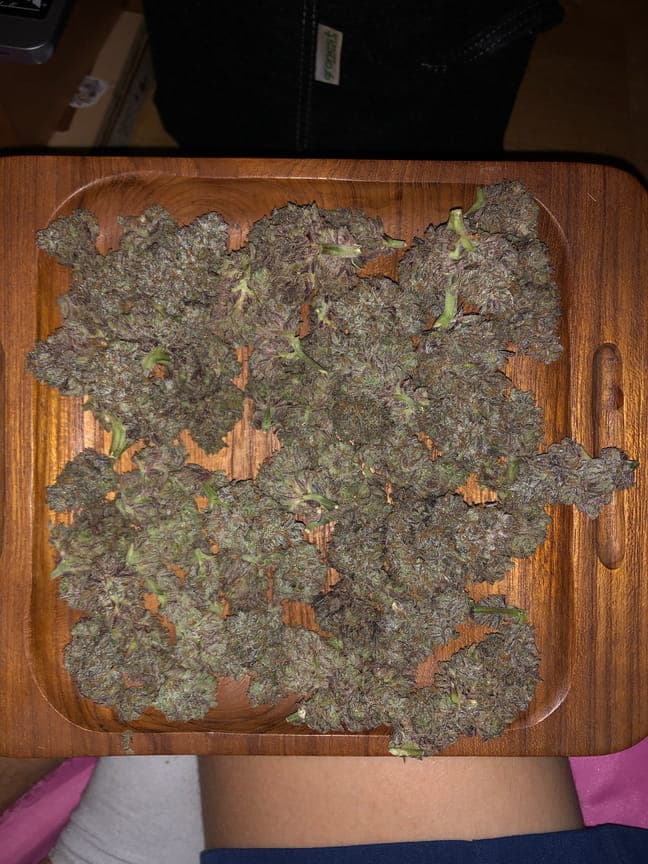 In der Blütephase hat sie am schnellsten und am stärksten an Masse zugelegt, besonders die Main-buds sind echt stark angeschwollen! Der Geruch war in der Blüte noch sehr der critical kush Genetik zuzuordnen. In der Endphase der Blüte ist sie auch vorbildlich gepurpelt, was das aussehen der Blüten nochmal veredelt hat!