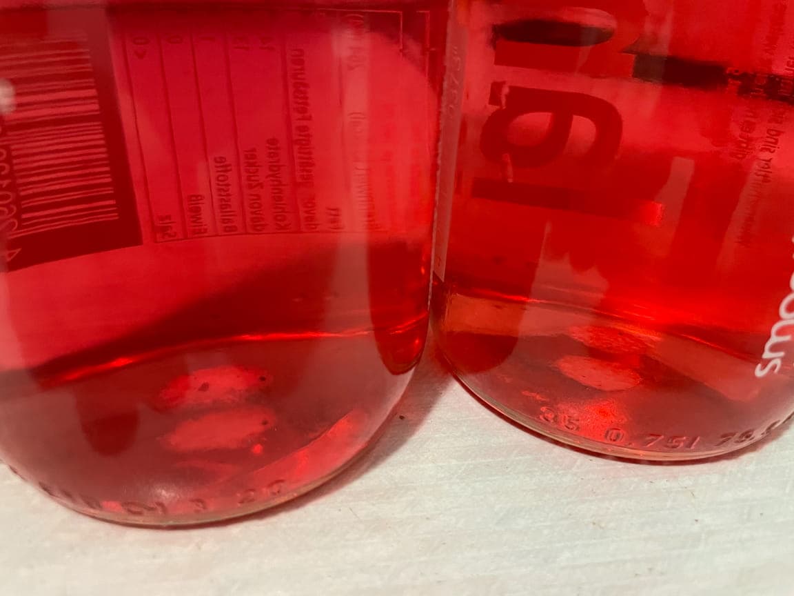 Wenn ich z.B. 10g haka rot in 1l Wasser in meinem Messbecher löse (nur so zum aufzeigen), und dann 1 Stunde lang mit nem Löffel umrühre, sieht man, kaum höre ich auf umzurühren, setzen sich einzelne, feine weisse partikel am Boden ab.