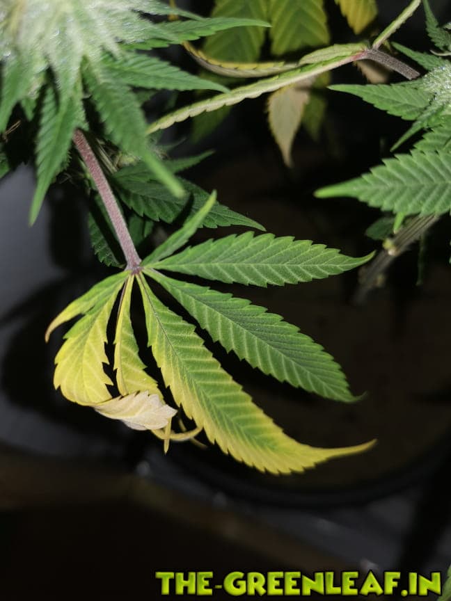 | Symptome | Gelbe welkende Blätter und grüne nach unten rollende Blätter |