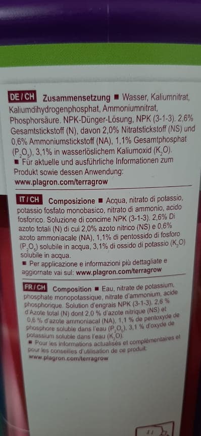 Dünger (noch nicht benutzt): Plagron Terra Grow, Plagron Terra Bloom