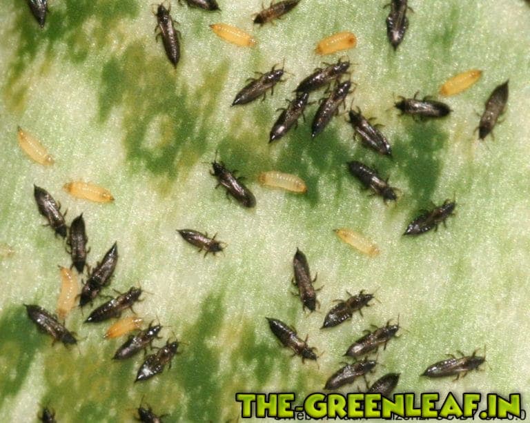 | Symptome | Schwarze Punkte und Tierchen auf den unteren/mittleren Blättern |