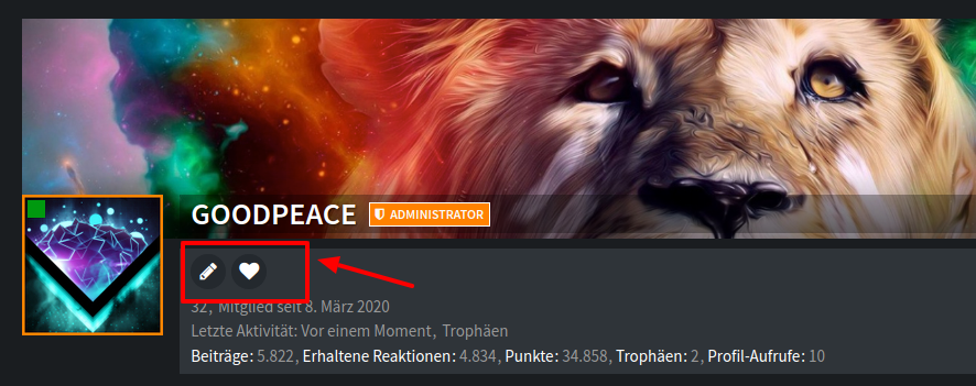 • Trophäen werden in der Sidebar und im Profil angezeigt (wenn Ihr mit der Maus [hover] drüber fahrt seht ihr auch die genaue Bezeichnung).