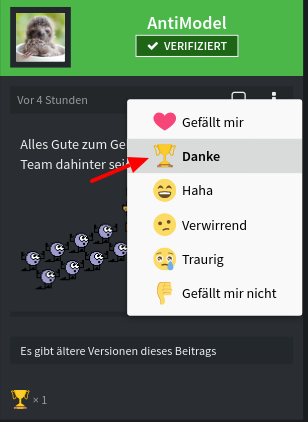 • Desktop => Icon der vergebenen Reaktion ist etwas größer: