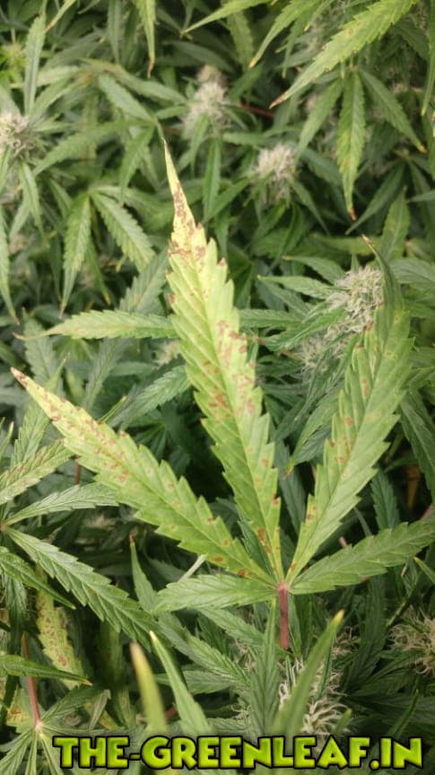 | Symptome | Braune Flecken, Blatt wird heller, rollt sich teilweise an der Spitze auf |