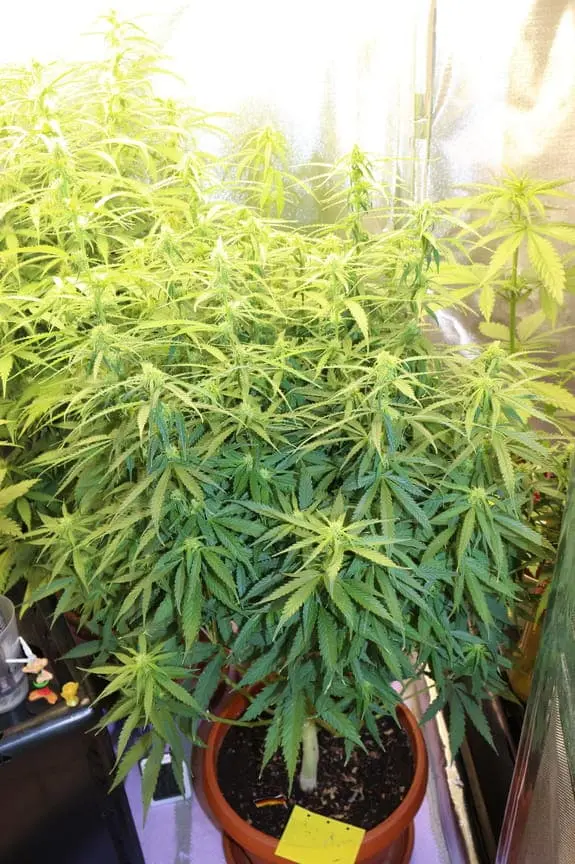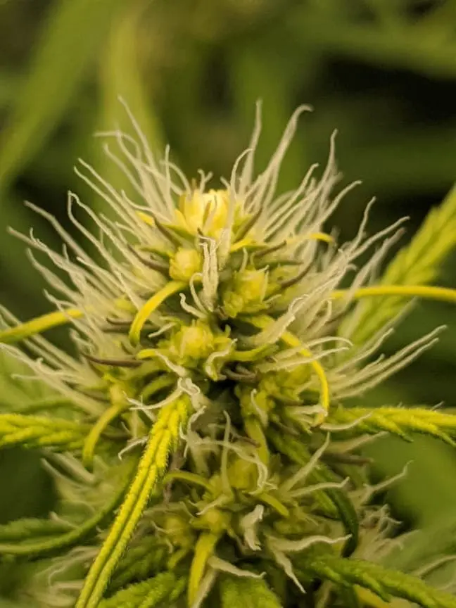 Grundsätzlich wird dabei die Cannabinoid Produktion so effizient, dass die Spitzen der Blüten über und über mit Trichomen überzogen sind – so dicht, dass man die Pflanze darunter nicht mehr sehen kann!