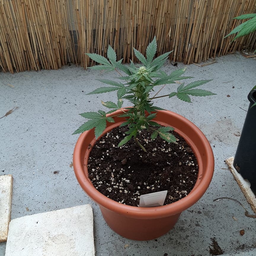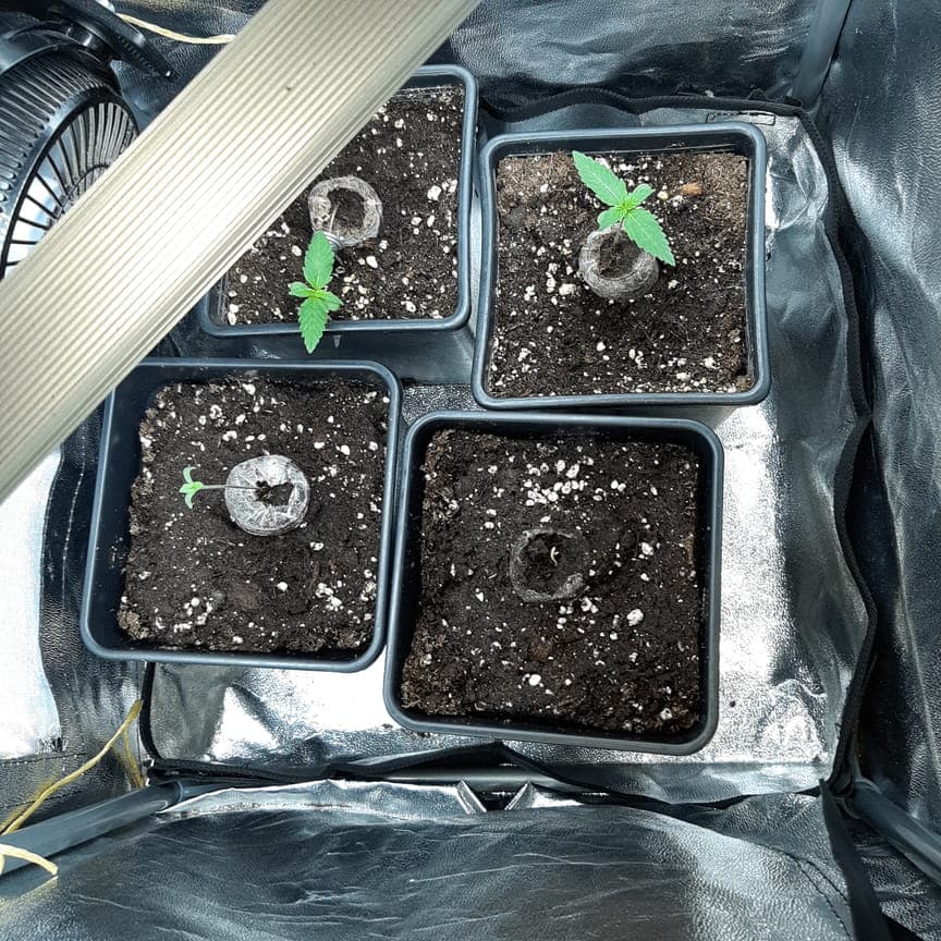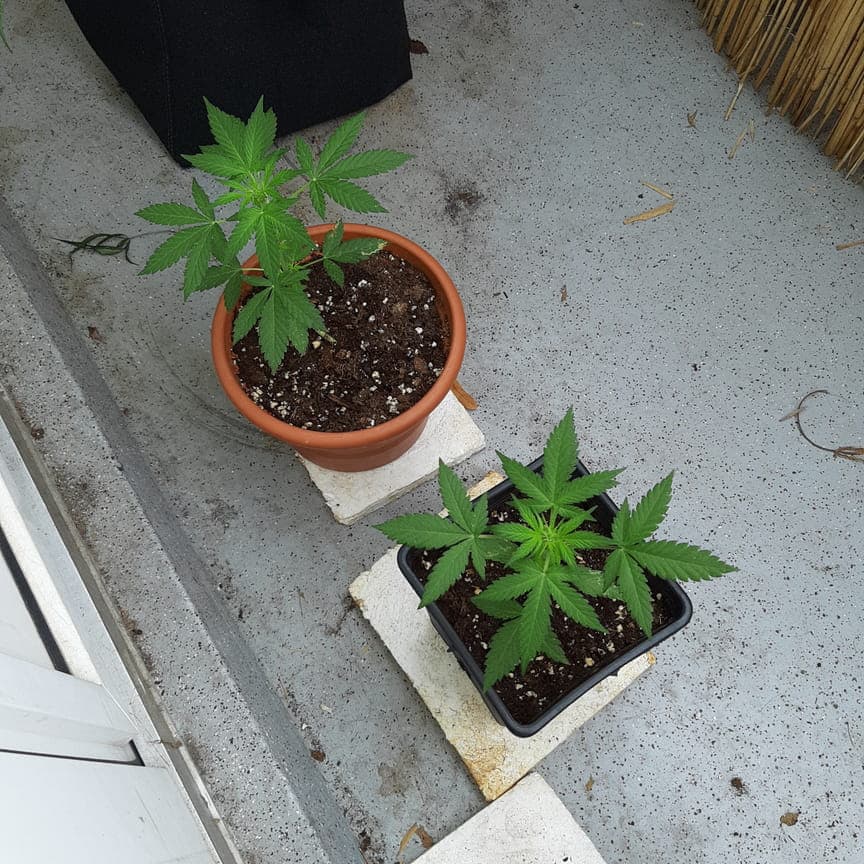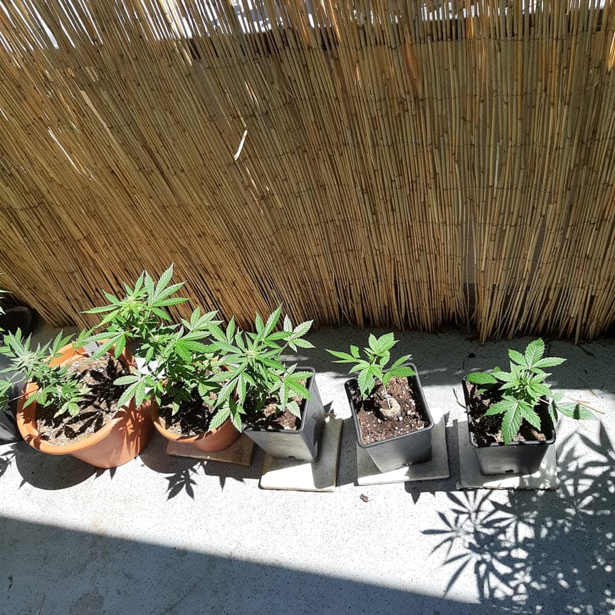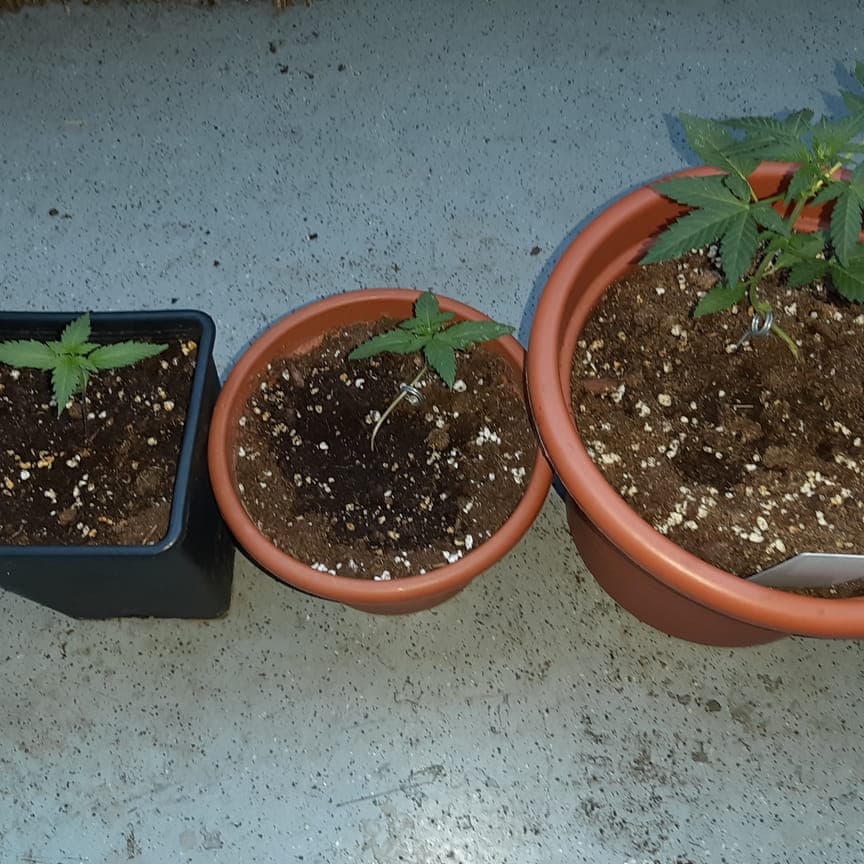 Ansonsten was noch zusehen ist sind die drei stecklingen die auch eine gute Größe erreicht haben und langsam in die vorblüte kommen und noch die kleinen in 3,5l Töpfen für die strain Vielfalt dabei ist cream caramel Auto red poison Auto sticky Beast autound white monster auto und noch eine masterkush auto8)