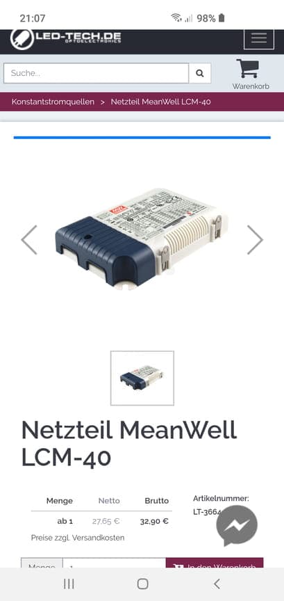 Das Netzteil müssten die haben, habe es ja dort selbst auch gekauft. Falls du bei Led-Tech bestellst.