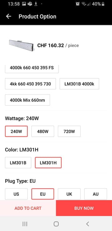Also gestern lag der Preis für 240w LM301H noch bei 158 €, mit UV IR FS so um die 174€