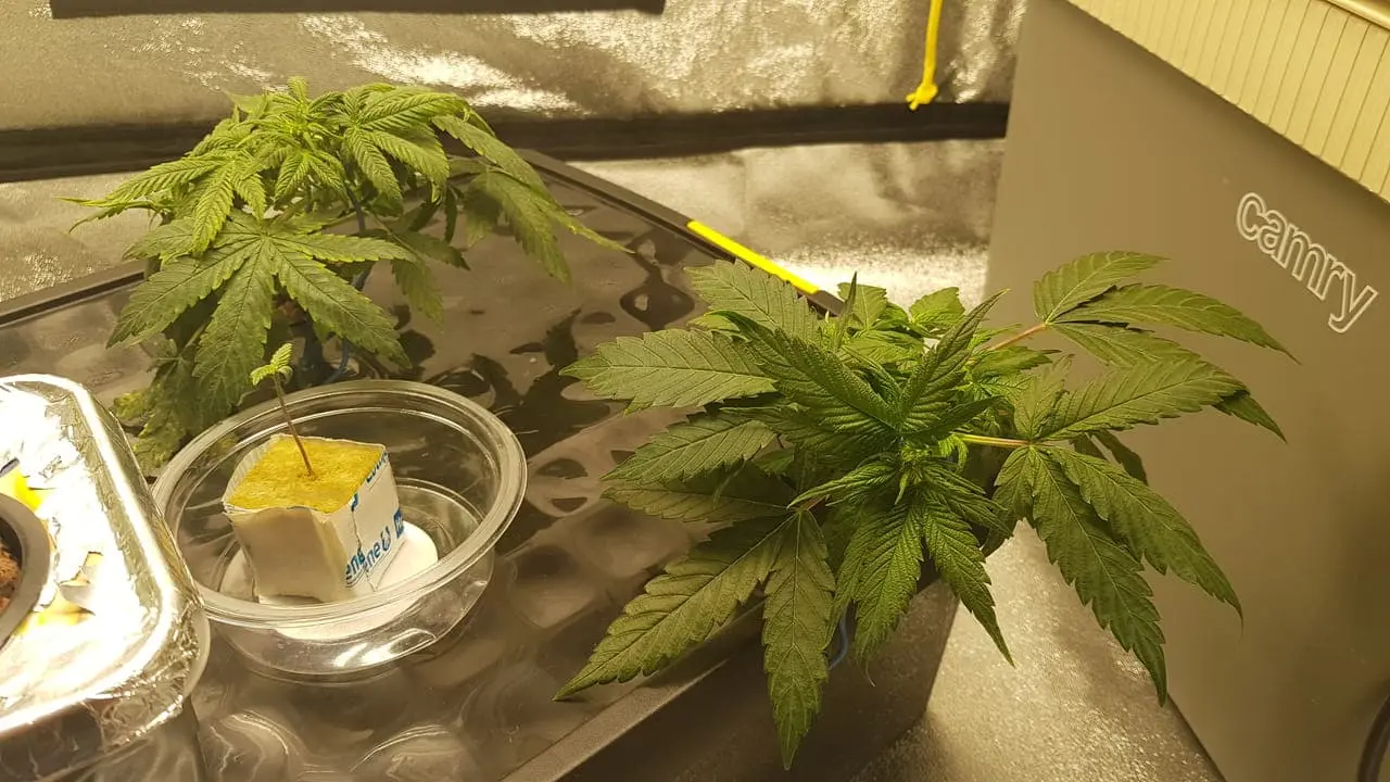 Ich habe am 15.11 Green Gelato und die White Widow jetzt in die große Plastikbox umgetopft. Sie hat 30l Volumen, aber ich habe es mit 15l Wasser gefüllt und die Nährstoffe dementsprechend hinzugefügt, und ich benutze