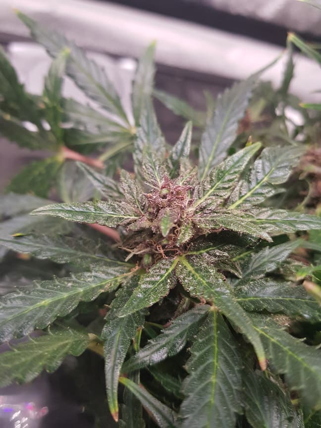 Bei mir werden die Buds jetzt auch fetter. Die Purple Queen ist dermaßen dicht, musste die starren und kleinen Äste noch manuell mit Drähten ausseneinderziehen. Die Hauptbud is eine Zusammensetzung von mehreren Ästen zusammen. Habe angst, dass sie mir verschimmeln tut. Die Olle riecht sowas von nach Waldbeeren, hammer lecker. Nicht stark aber lecker. Jedooch sind wenig Trichomen zu sehen.