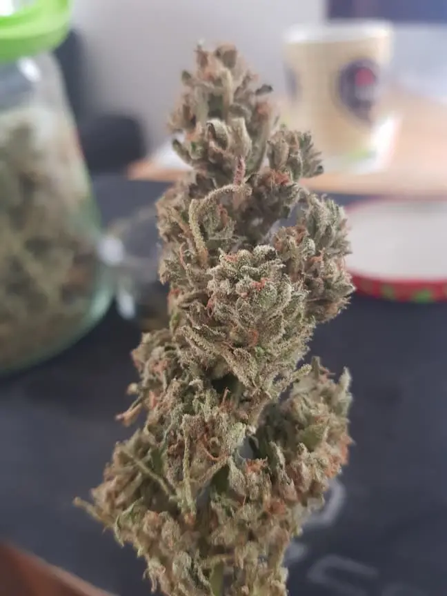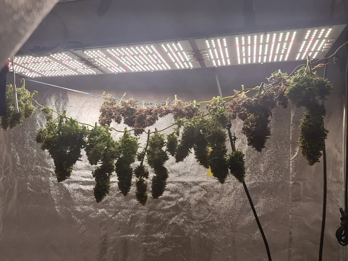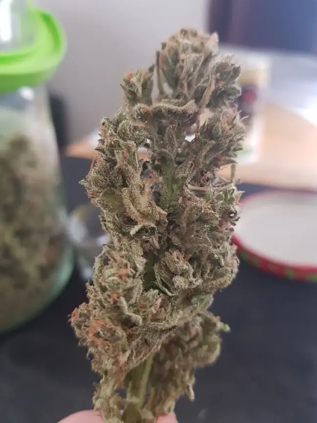 Die Green Gelato ist getrocknet. Wenn auch ein wenig schnell. Stellte sie nur paar Std. neben dem Growroom bei 35% RLF.. Von den 149g Nass- sind nur 27g Trockenmasse übrig. Lass sie dann curen bissl. -