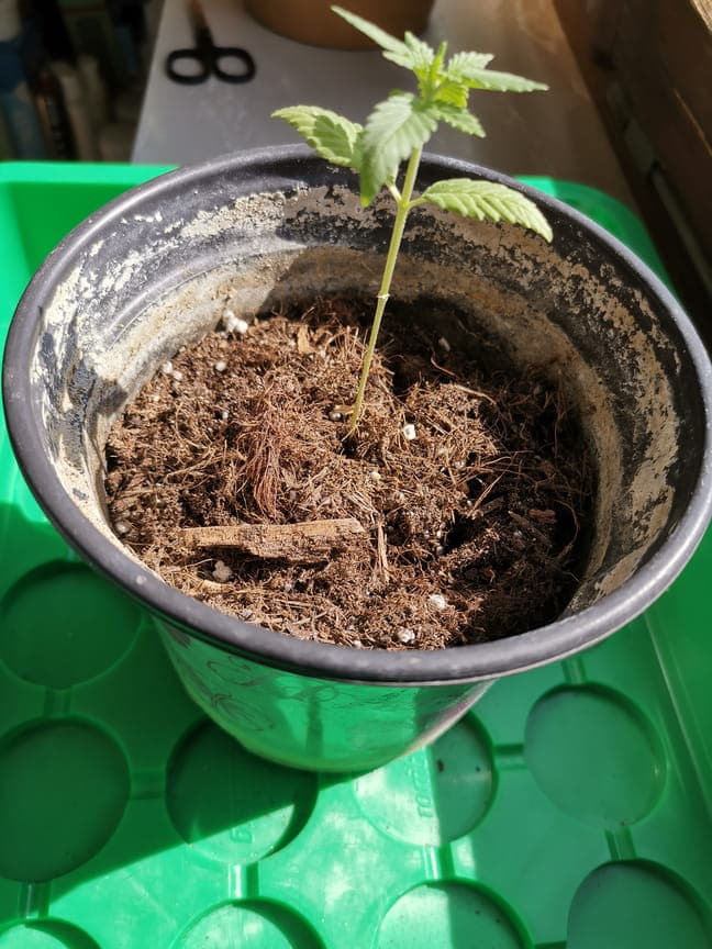 -> nach einer weiteren Woche begann ich dann mit einer leicht vorgedüngten, speziell für junge Pflanzen vorgesehenen Blumenerde, zu arbeiten (neuer Topf siehe Bild)