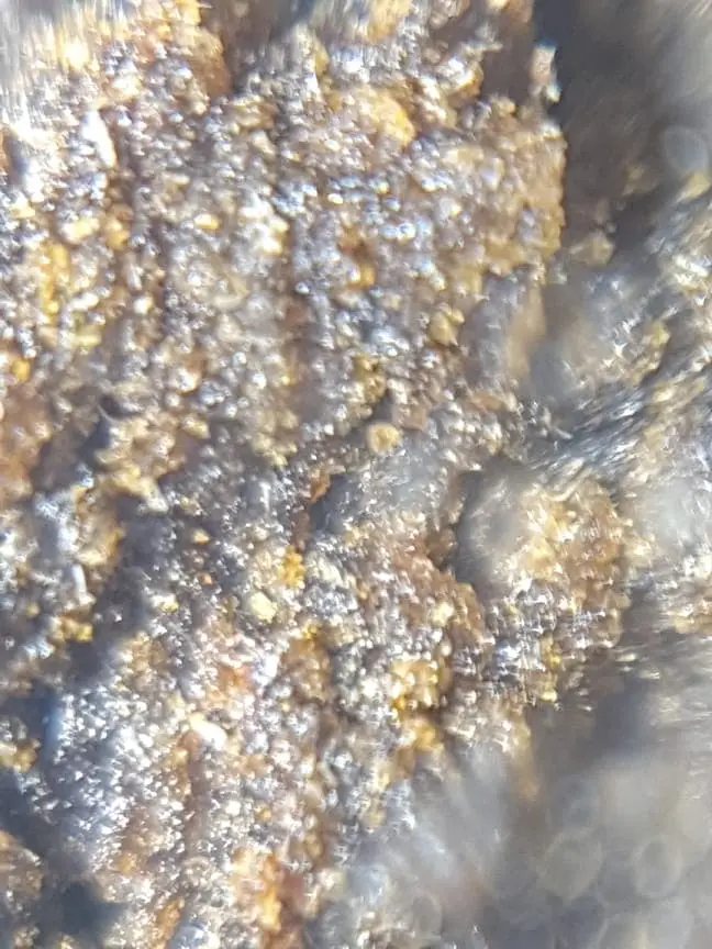 Das gumby ging durch ein 220micron mesh von den bubblebags bevor ich es habe "absetzen" lassen. Unter dem mikroskop auch nicht ein grüner partikel. Was von aussen dran klebt habe ich mit den Fingern verunreinigt :D