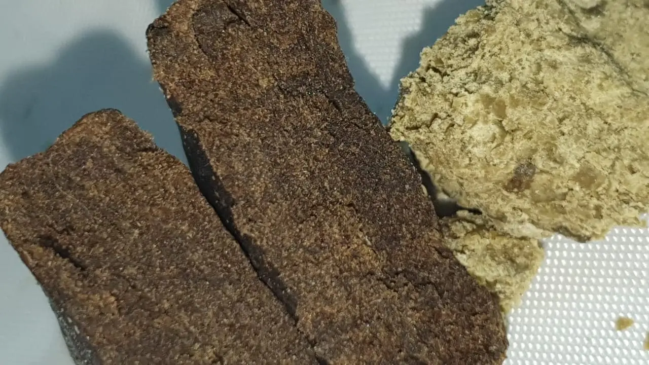 Ist weich wie knete. 50 gramm buds oder so, kompletter fresh frozen verschnitt von letzter Ernte dazu + circa 15 gramm CBD gras (dinamed.)