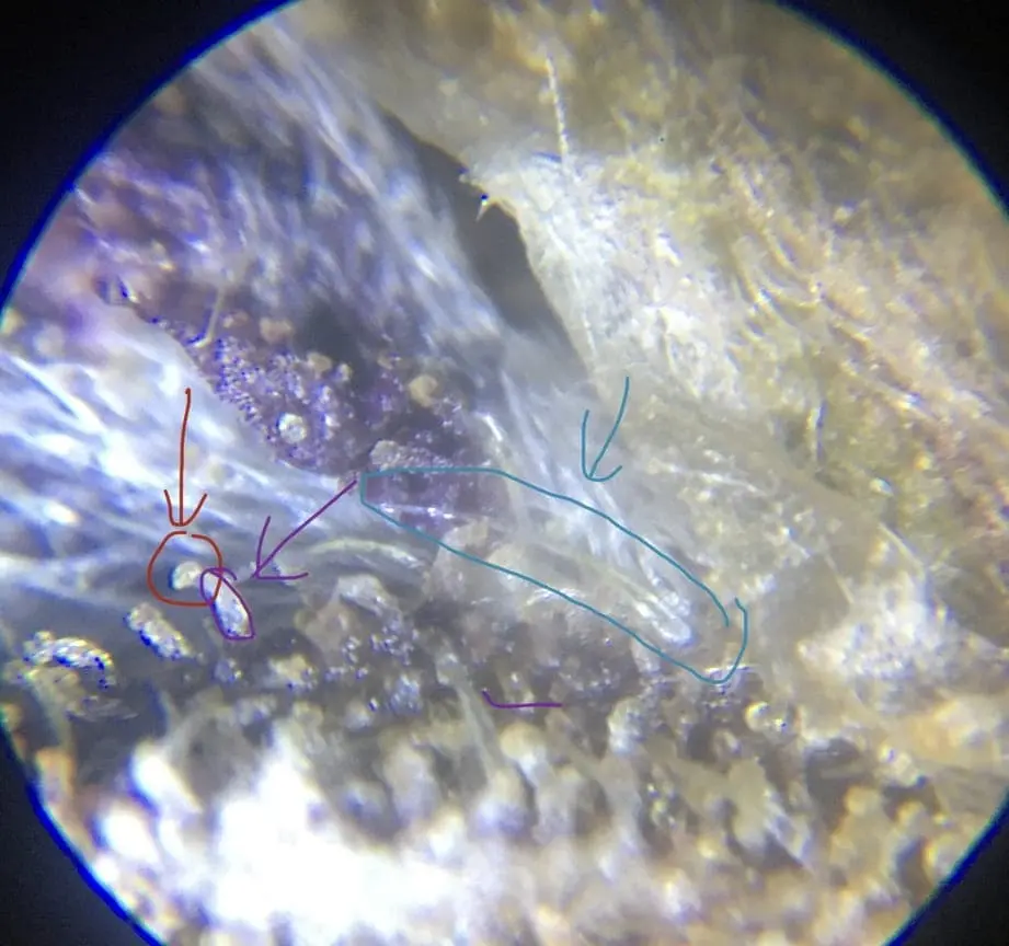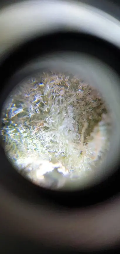 Ich kann schon mal keine Glasur erkennen. Was ich aber genausowenig sehe sind Trichomköpfe. Das Gras ist also mindestens mal im Pollinator gewesen.