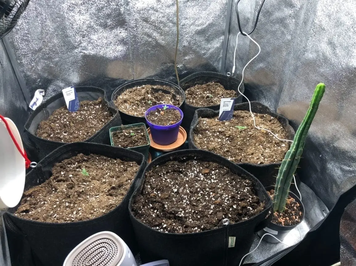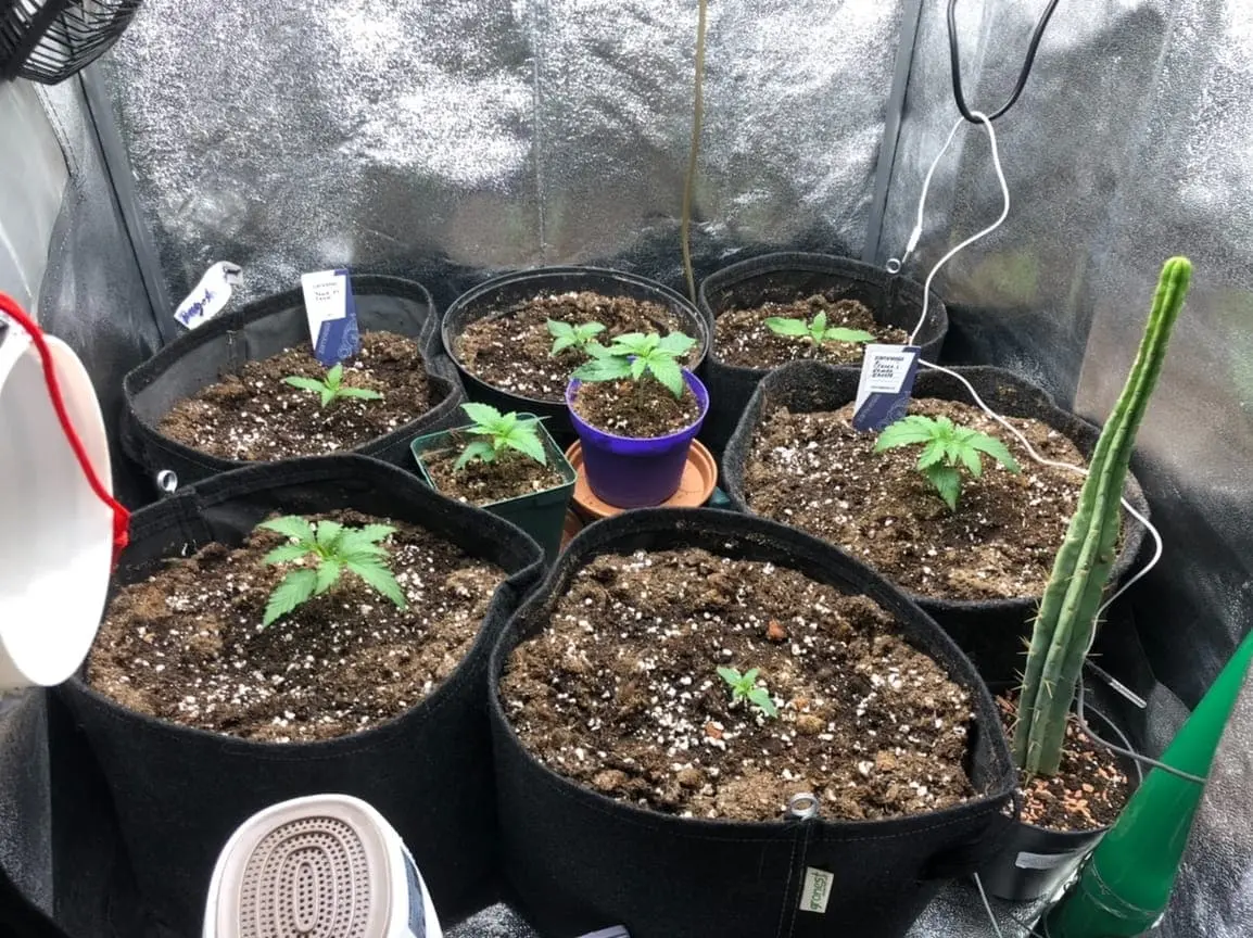 Alle Samen sind aufgelaufen und von der Fensterbank in einem eazy Plug direkt nach schlüpfung in 11 Liter-Töpfe von gronest umgetopft.