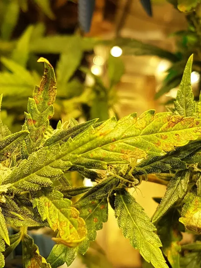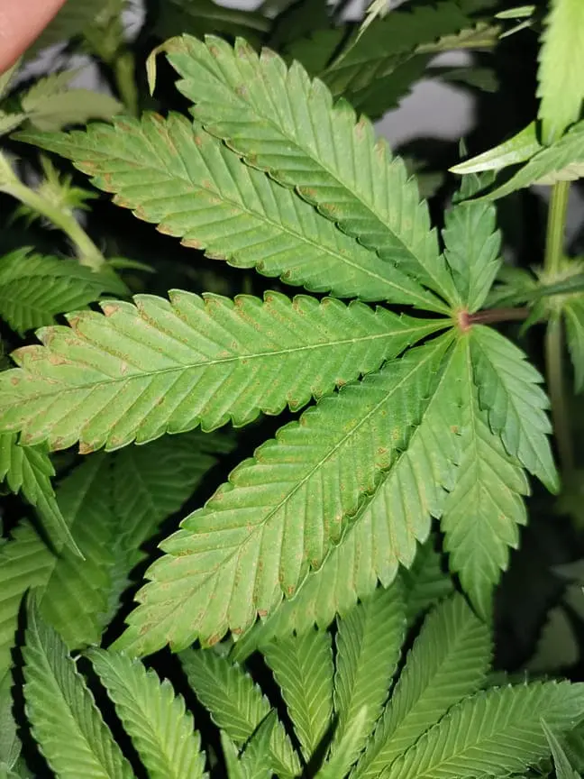vor zwei Tagen habe ich auf zwei Blättern braune Punkte bemerkt. Das Blatt befindet sich ca 25cm mittig unter der LED. Ein weiteres Blatt, welches gegenüber liegt, hat auch einige kleine braune Punkte.