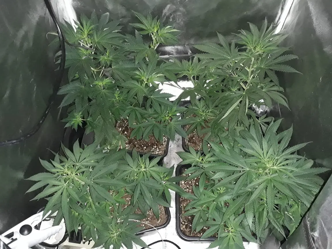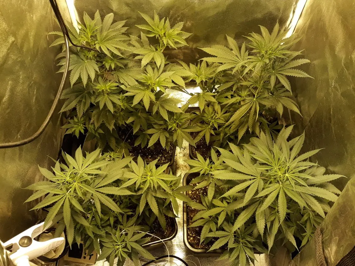 Die beiden enstandenen Haupttriebe runterbinden und ein schönes Canopy erreichen mit mehrmaligen toppen ggbf.![]()