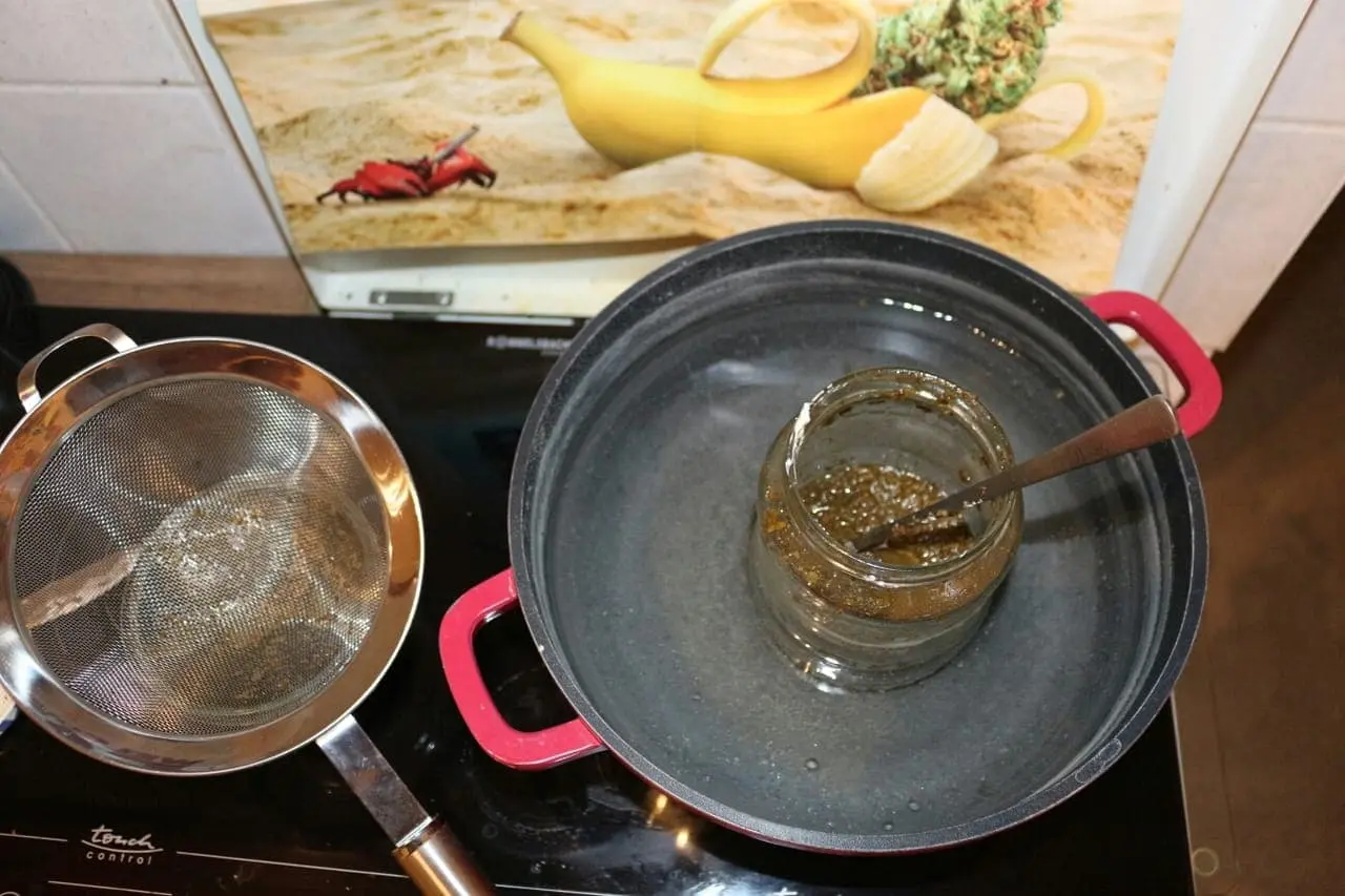 die Brownies vom Dr. Ötker. das gras im zu benutzenden kokosöl ne halbe Stunde bei ca 120 Grad köcheln lassen fertig .. haut rein hab für eine Packung (12 brownies) mal 35g benutzt , da gingst ab