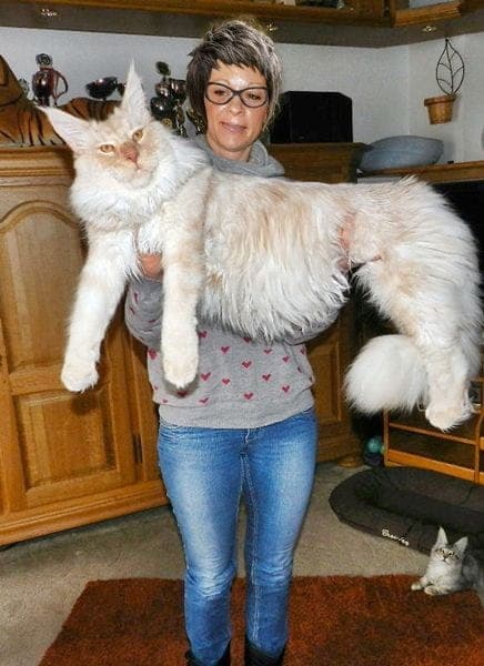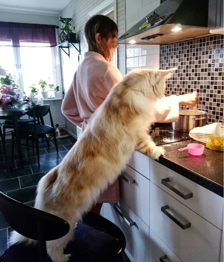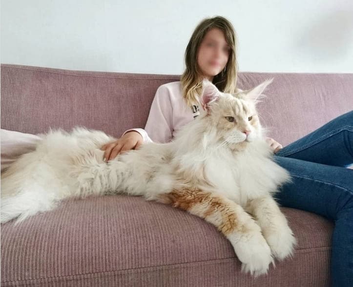 die Katze ist groß . schau mal auf instagram nach Maincon - da gibt es echt riesige viecher ( groß wie kleine Hunde )