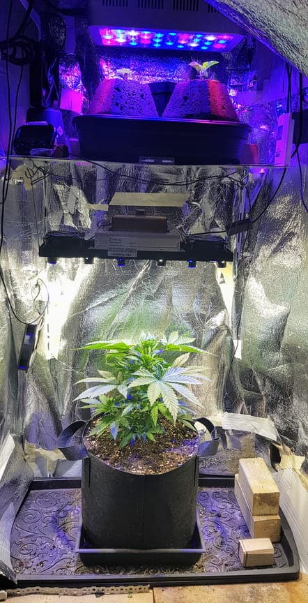 Unten 1. Wachstumswochen mit rein weiss/blau- Licht 14000k, 5000k, blue.
