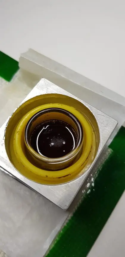 nix gemischt - wird wieder fester, aber einfach Phiole erhitzen und das läuft.