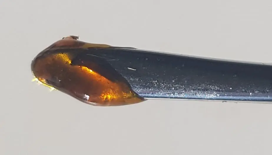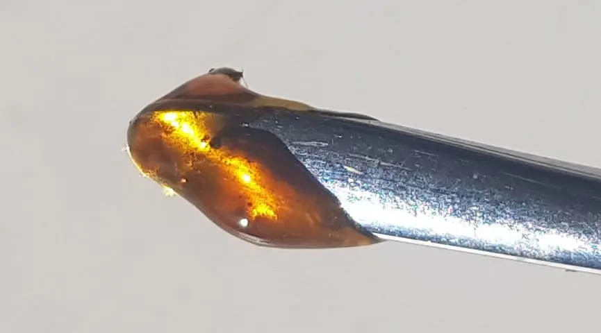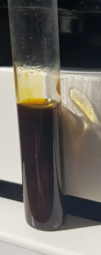 Jetzt ist es gerade am decarboxylieren, da verdampft noch der letzte kleine Rest und das öl ist fertig und wird warm ins Fläschchen umgegossen.