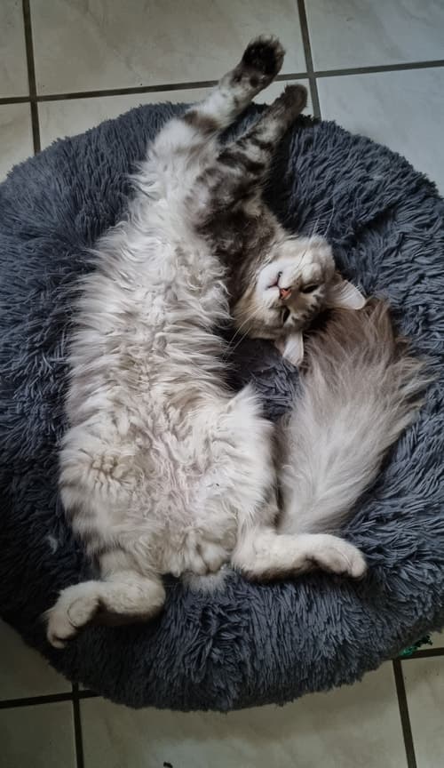 der kerl war schlank, kurzhaarig, mit links und rechts je 1 weissem barthaar, weissen extrem brutalen krallen, udn wog fast 9 kilo.