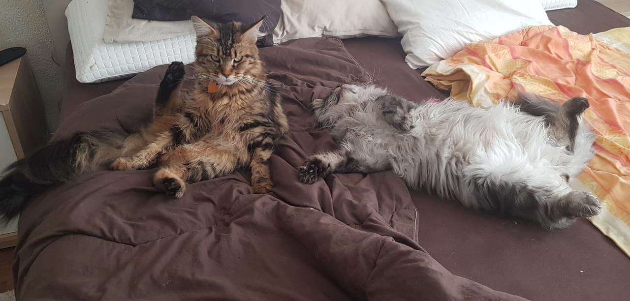sind 2 MainCoon , der Graue ist der Kater. (Müsste man sehen