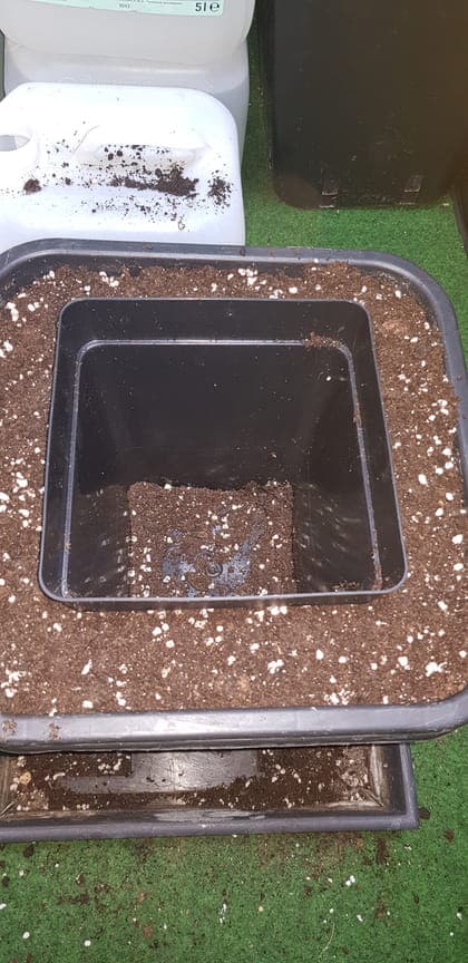 Dann ne dünne Schicht Growmix und einen Topf als Vorlage nehmen.