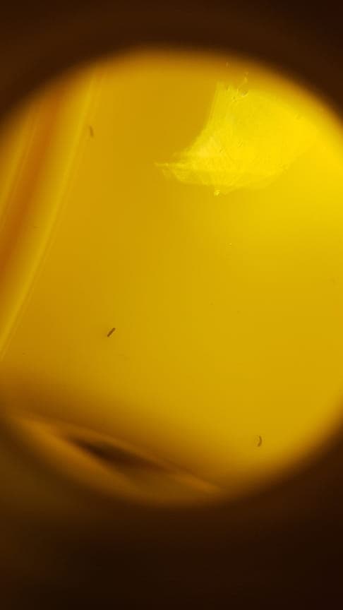 Davon sind tausende im Wasser. Was ist das? Das Wasser war ganz normales Leitungswasser. Aber es sind einige Vermiculit-Brocken von den Raubmilben reingefallen. Raubmilbenfutter? Muss ich die schnell loswerden, bevor sich da eine neue Pest entwickelt?