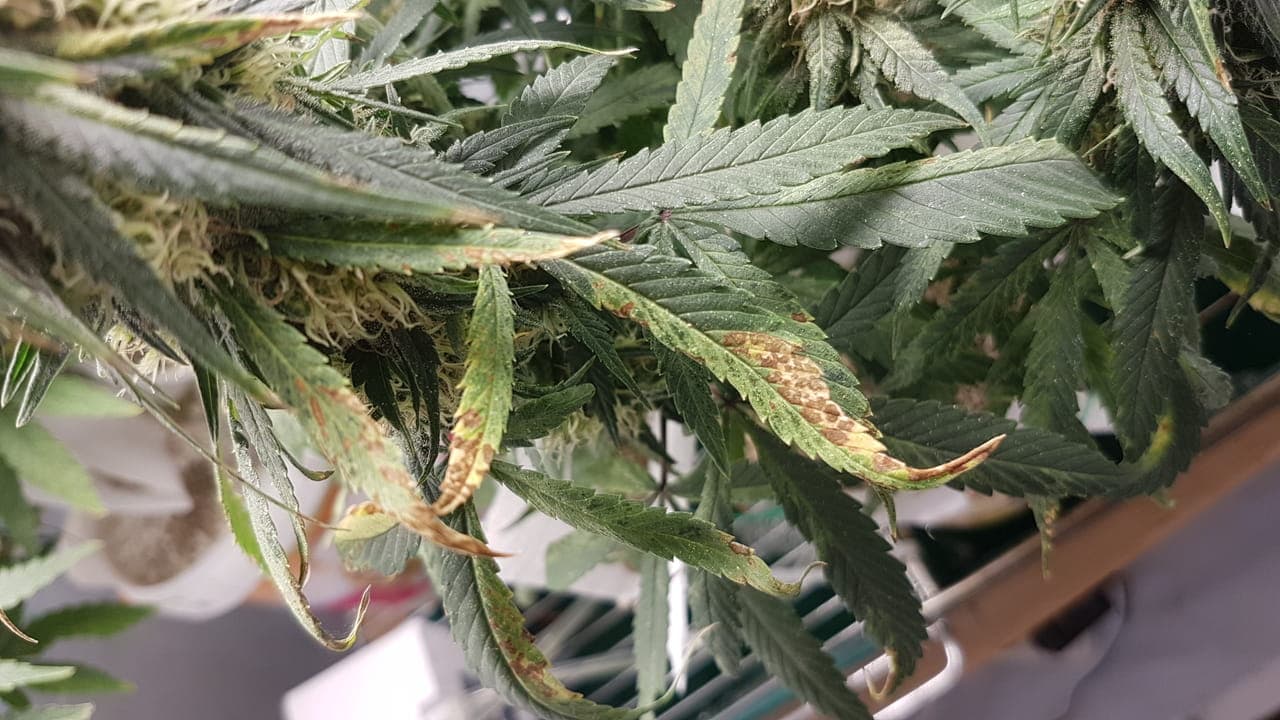 Hier sind die Spinnmilben richtig angekommen. Praktisch komplett befallen. So schade um die schönen Buds.