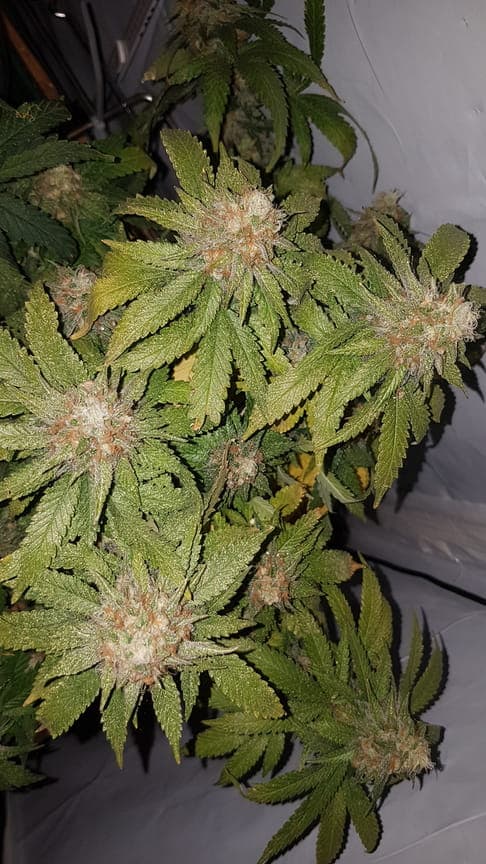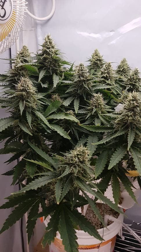 Eine wunderbare Pflanze. Obwohl ich die mehrfach getopt und runtergebunden habe, um möglichst viele kleinere Buds zu bekommen, entwickelt die sich super. Schöne dicke Buds bekommen. Hoffe ich verliere nicht wieder 50% an Budrot ...