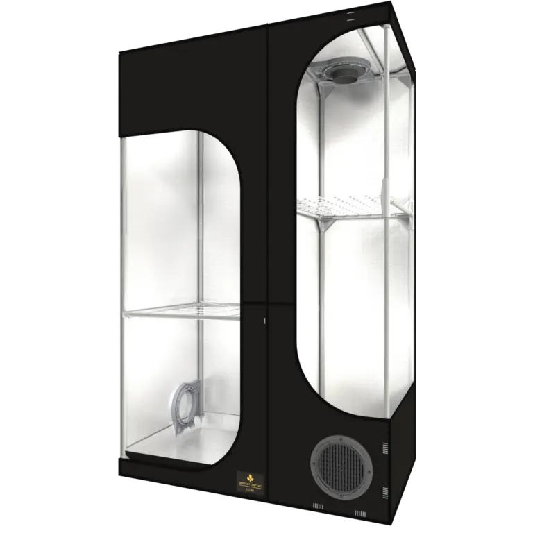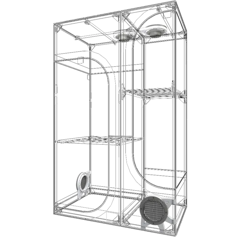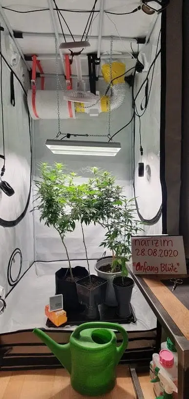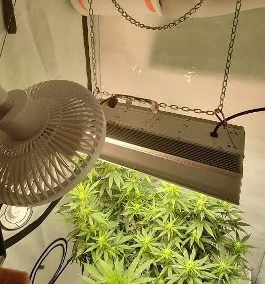 1 und 2 Bild (ohne Schaumstoff über Lüfter) Bild 3 und 4 (mit Schaumstoff und man sieht den weissen Ventilator der strömt 50% der Luft auf die Lampe und 50% der Luft auf das Blätterdach)