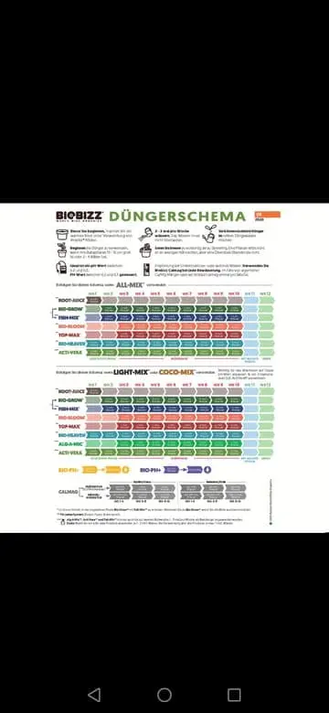 biobizz, mit 400w ndl qm war das schema passend. mit 600w ndl/qm wurde mindestens 1,5x laut schema fällig in blüte, oder die sind verhungert. 150% SCHEMA passt nicht zu meinem geldbeutel, andere hersteller bieten wirtschaftlichere dünger an.. ein jeder wie er mag.